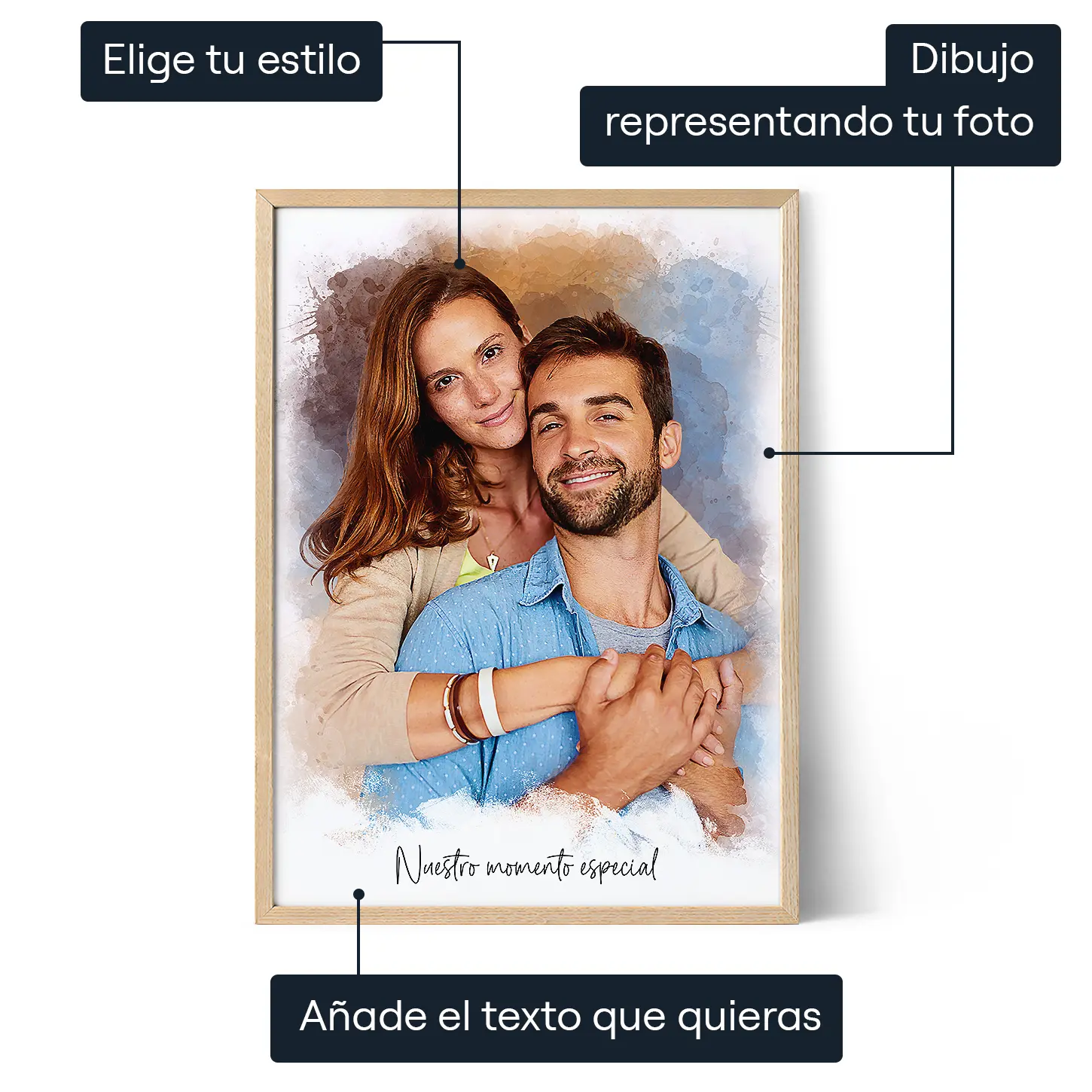 Convierte tu foto favorita en un bonito retrato personalizado, impreso en póster premium o lienzo de la mejor calidad. Un regalo personalizado y lleno de significado
