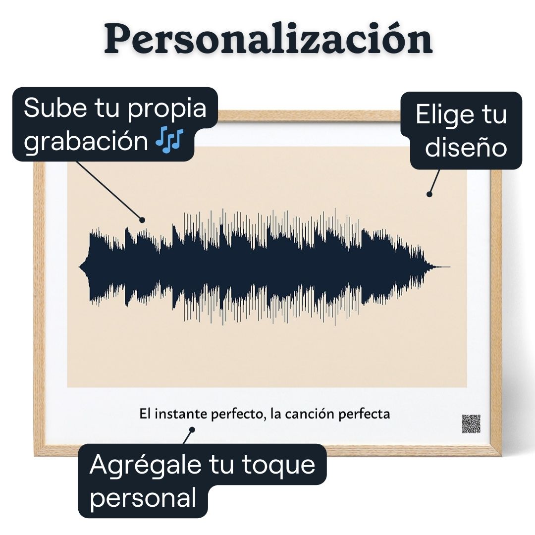 Lo que hace que nuestra onda sonora de un “te amo” sea aún más especial es que es completamente personalizada. Cada onda de sonido se crea a partir de la voz en el archivo de audio, y no se trata de una obra de arte genérica que puedas encontrar en una tienda de regalos. Cuando esa persona cuelgue tu regalo en su pared, siempre recordará que nadie más tiene uno igual.