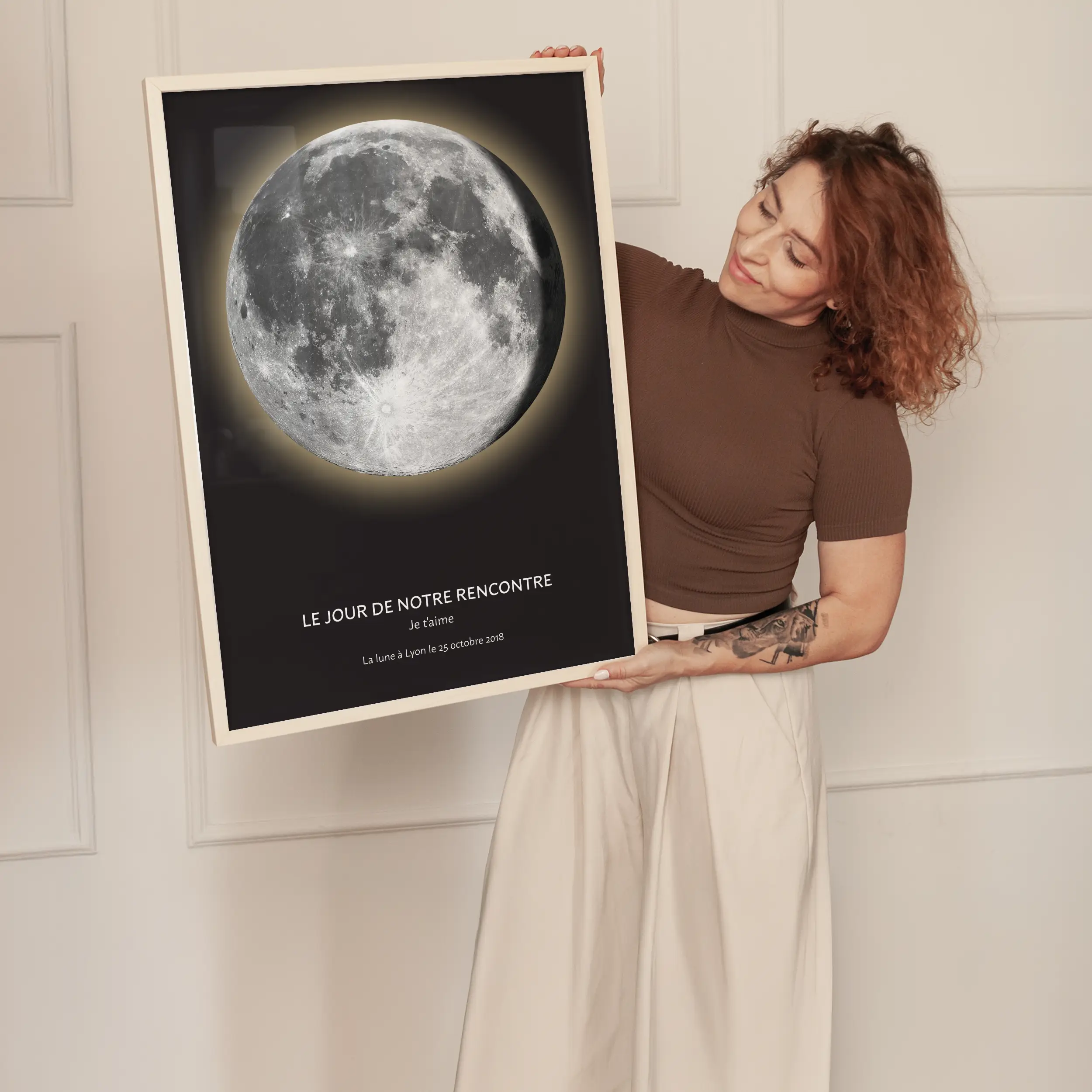 Cette affiche lune personnalisée vous permettra d'immortaliser le visage lunaire de vos soirées préférées. Gardez-en mémoire vos plus beaux souvenirs et les moments de votre vie les plus mémorables sous un ciel identique!