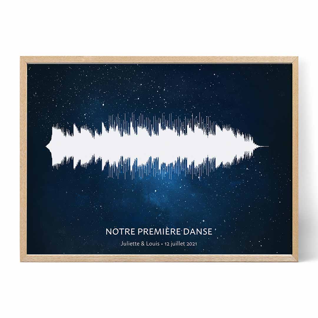 Nous pouvons vous livrer votre art d'onde sonore chanson de première danse sous forme de poster de qualité supérieure, d'impression sur toile ou de fichier numérique. Toutes nos impressions sur papier sont expédiées dans le monde entier. Préservez ce moment le plus emblématique de l'un des plus beaux jours de votre vie commune.