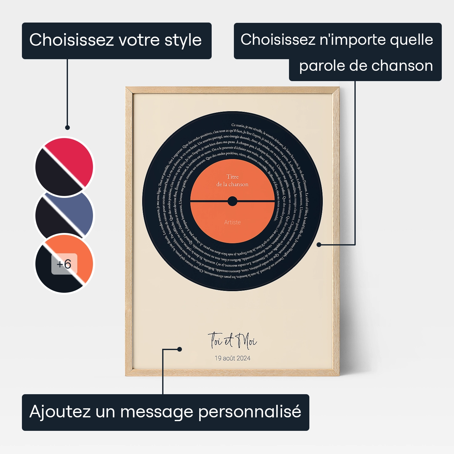 Prêt(e) à créer un cadeau émouvant ? Personnalisez votre *Art Lyrique Personnalisé* dès aujourd’hui. Rendez-vous sur notre éditeur en ligne pour choisir un fond, saisir les paroles de la chanson et ajouter un message personnalisé. Sélectionnez le format qui correspond à votre style, et c’est parti !