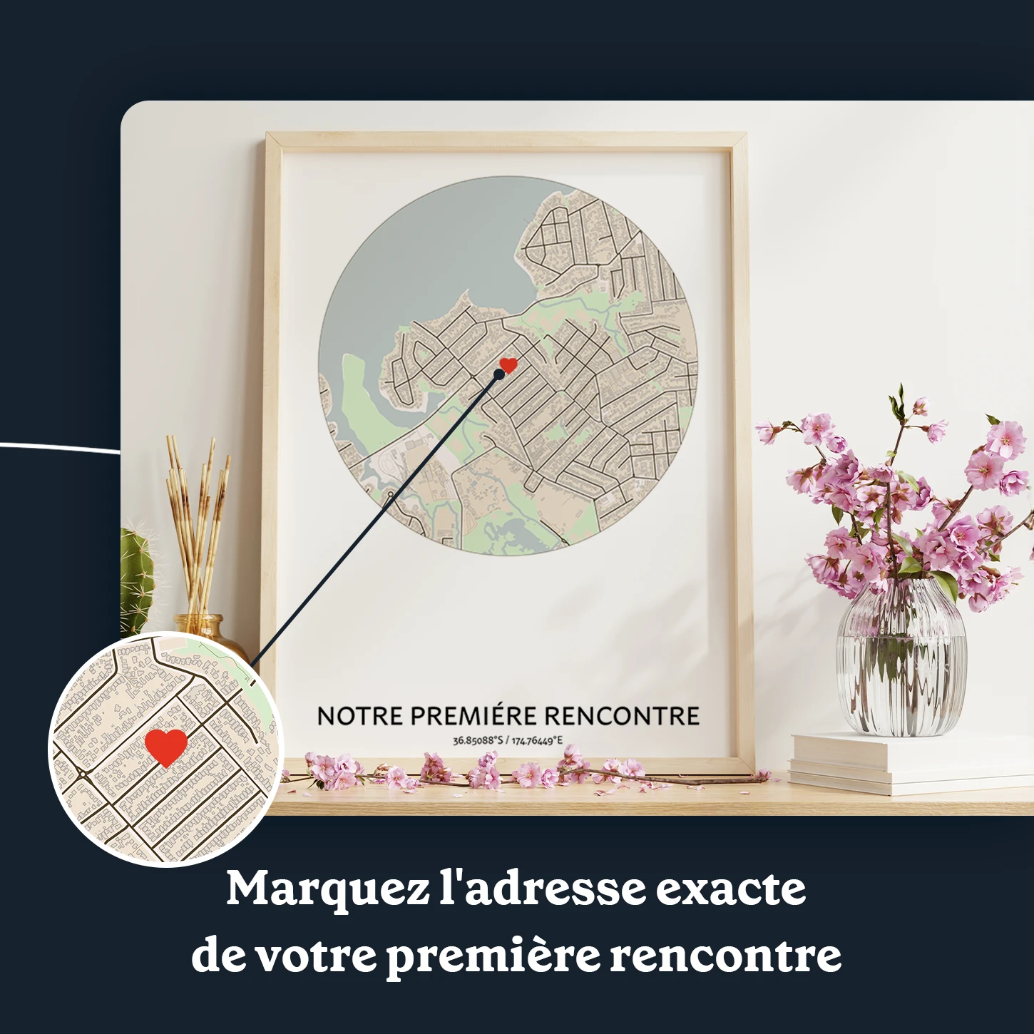 Si vous êtes à la recherche d'un cadeau à la fois sentimental et esthétique, notre impression personnalisée est un excellent choix. Il sera certainement apprécié par tous ceux qui le recevront et constituera un souvenir précieux pour les années à venir. Que vous célébriez une étape importante de votre relation ou que vous souhaitiez simplement montrer à une personne combien elle compte pour vous, la Carte en Cercle Où Nous Nous Sommes Rencontrés est le moyen idéal de le faire.