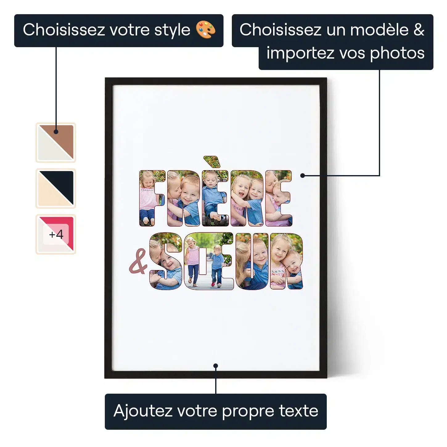 Transformez des photos de frère et sœur en un collage personnalisé qui célèbre leur lien unique et crée un souvenir intemporel à chérir chaque jour