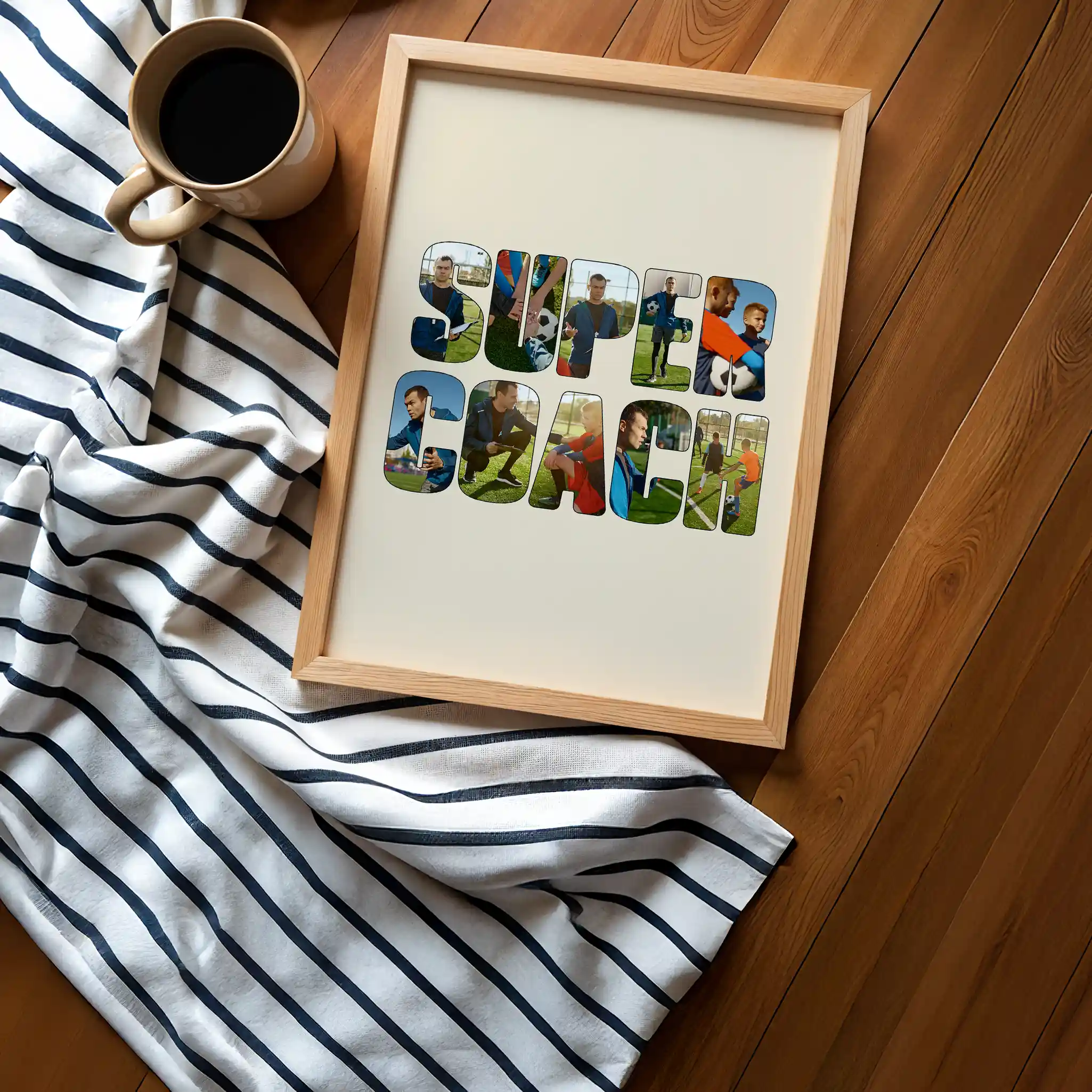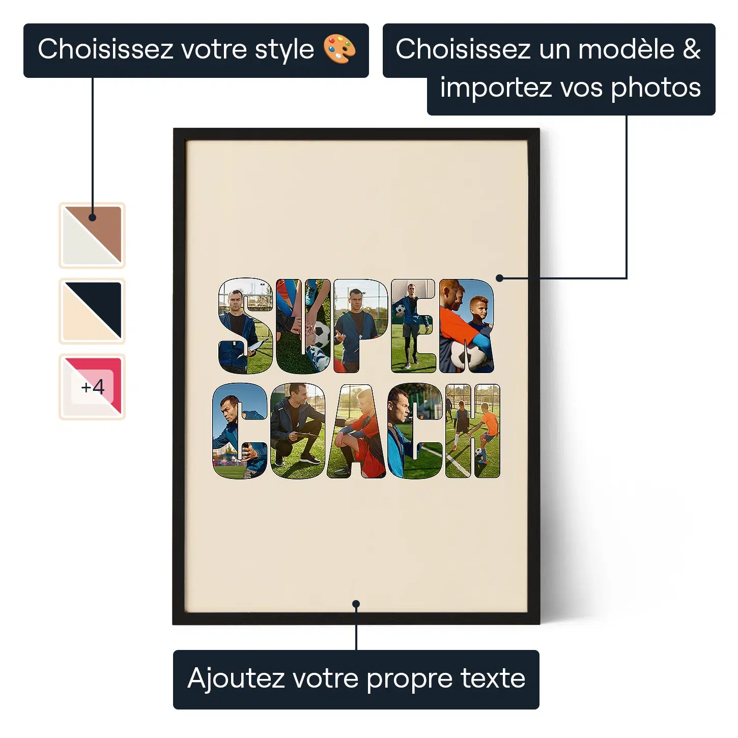 Transformez des photos de votre équipe sportive et ses moments marquants en un collage personnalisé qui rend hommage à votre coach et crée un souvenir rempli de gratitude