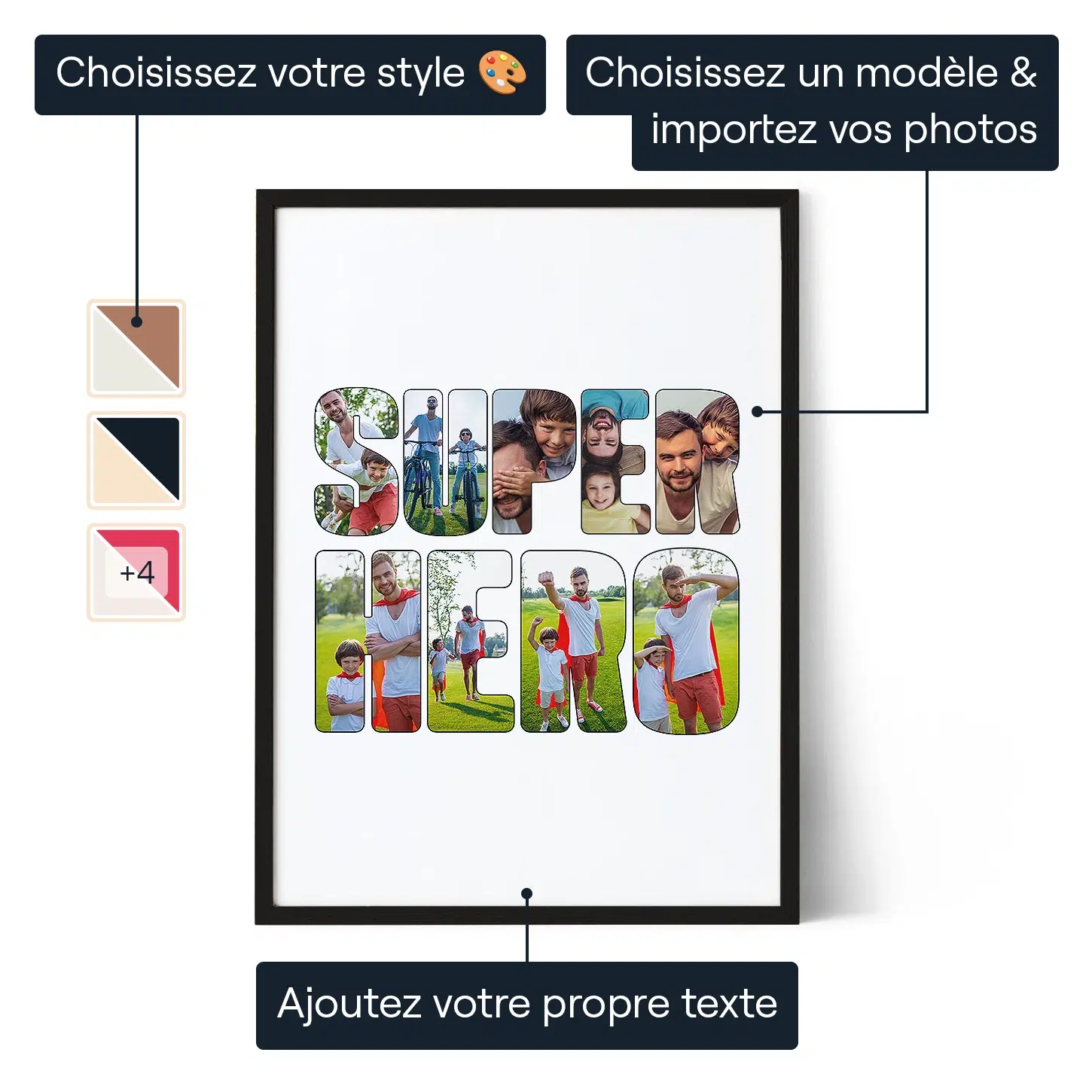 Transformez vos photos préférées en un collage personnalisé qui met à l’honneur les moments héroïques, le courage et la personnalité d’un proche dans un souvenir intemporel, adapté aussi bien aux enfants qu’aux adultes