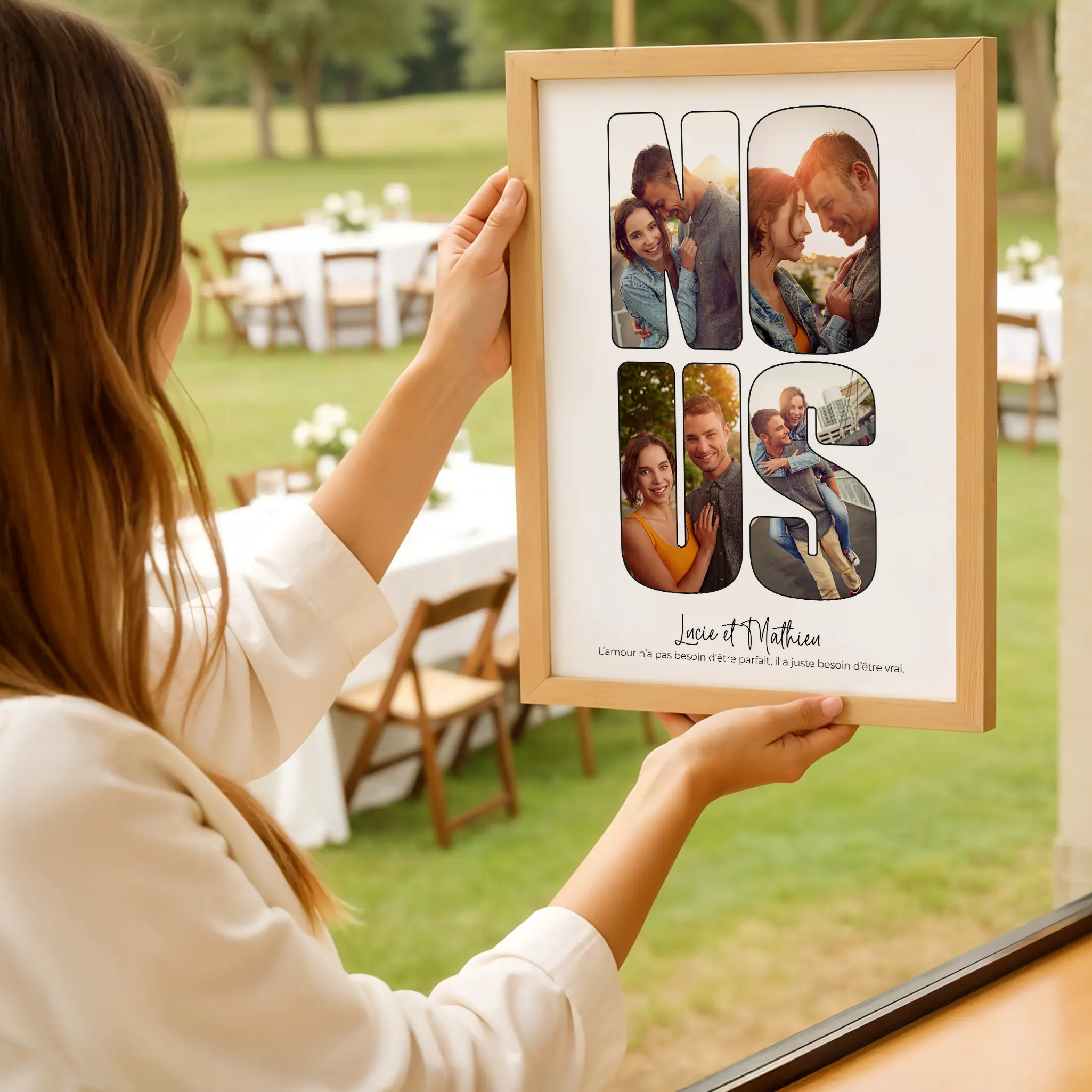 Transformez vos souvenirs préférés en un collage photo en forme de lettre ou de chiffre, chargé de sens, conçu sur mesure et imprimé sur un poster ou une toile premium