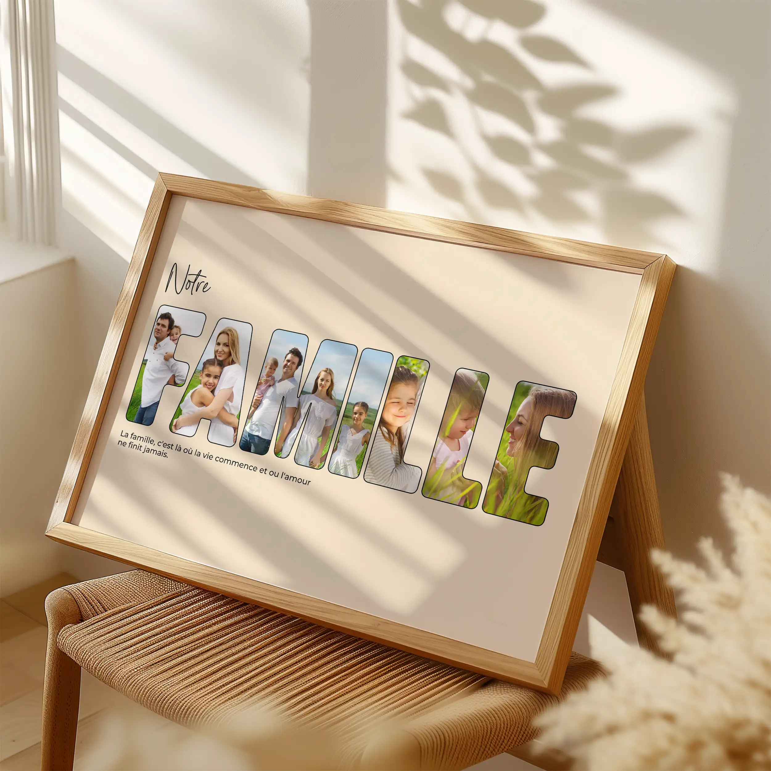Capturer les moments les plus précieux de la famille n'a jamais été aussi facile avec le Collage Photos en Lettre pour la Famille. Ce produit unique vous permet de transformer vos photos préférées en une superbe impression ou une toile ayant la forme du mot « famille ». Qu'il s'agisse d'un cadeau de Noël, d'une pendaison de crémaillère ou d'un geste sincère pour les parents ou tout autre membre de votre famille, ce collage est le choix idéal.