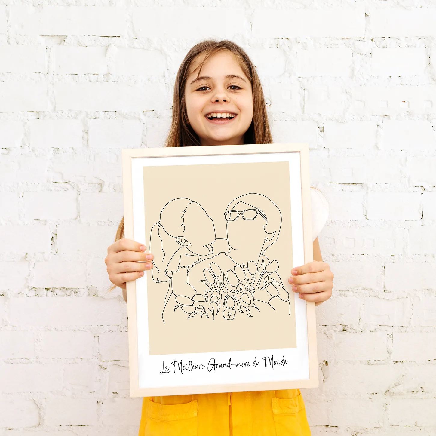 - Laissez nos artistes dessiner un dessin au trait unique à partir de votre photo afin que vous puissiez l'offrir à votre chère grand-mère