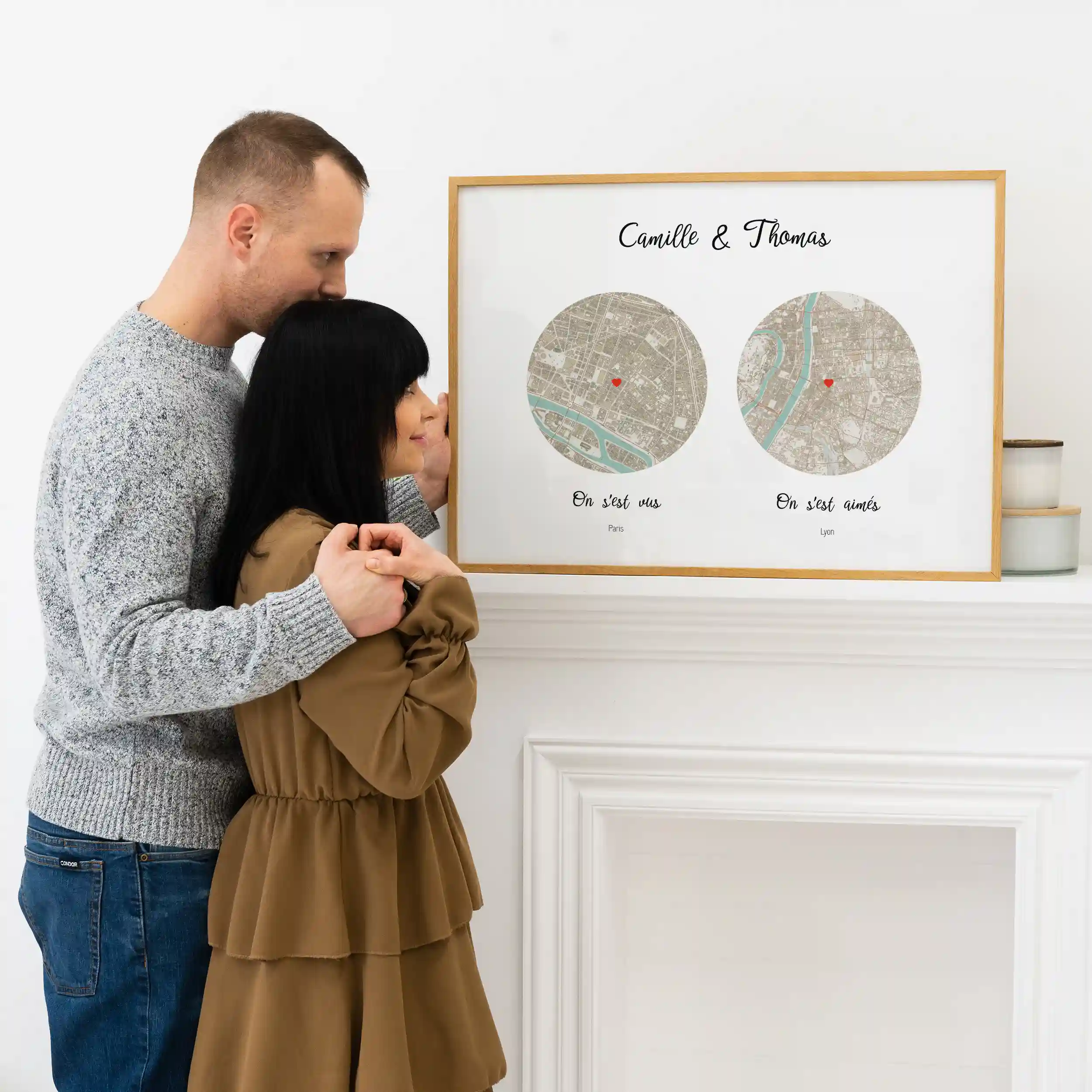 Enfin, choisissez le mode d'impression de votre carte - avec ou sans cadre, sur toile ou sous la forme d'un fichier numérique instantané que vous pouvez imprimer près de chez vous. En suivant ces étapes simples, vous pouvez créer une Double Carte Où Nous Nous Sommes Rencontrés belle et personnalisée, qui capture l'essence de votre histoire d'amour.