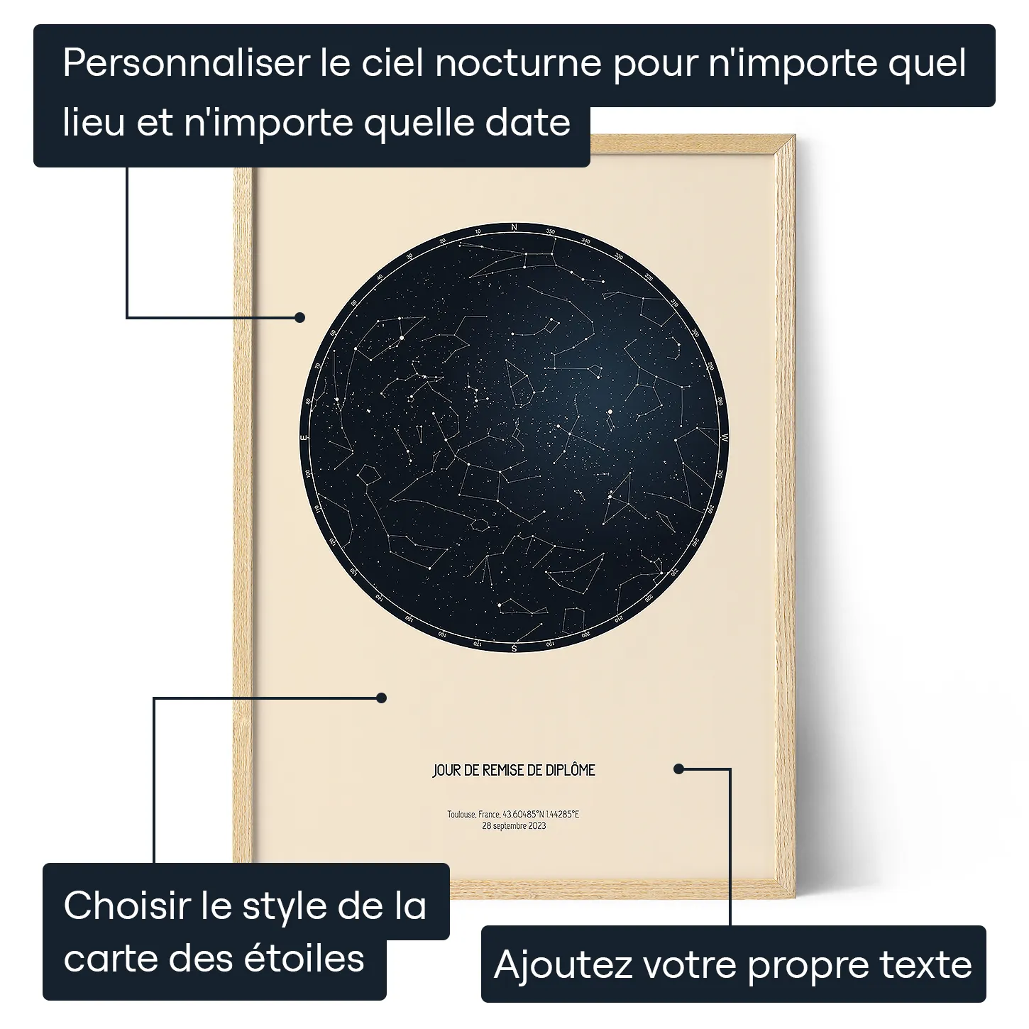 - Créez une carte des étoiles personnalisée en fonction du lieu et de la date que vous avez sélectionnés