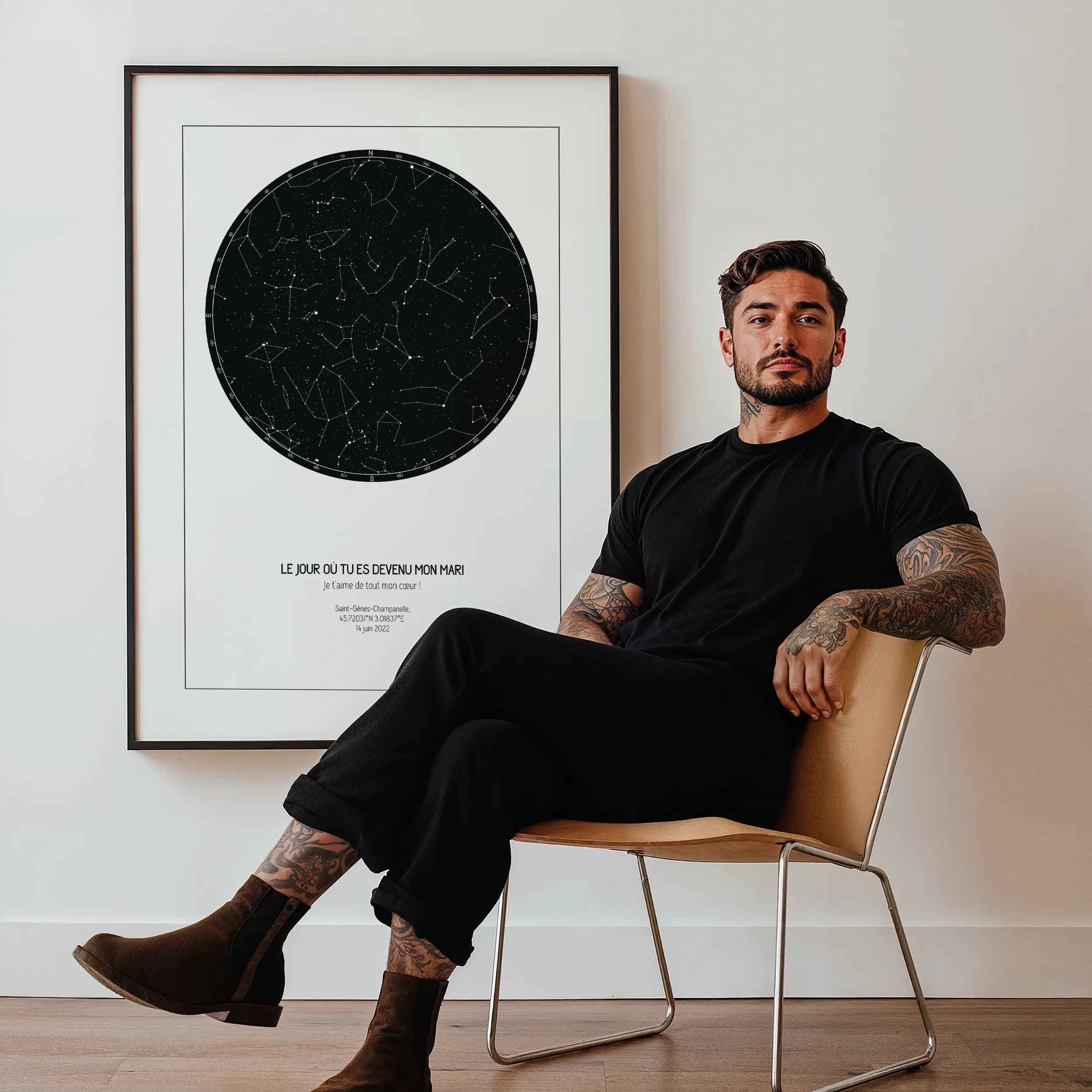 Faites en sorte que votre mari se sente apprécié en lui offrant une carte du ciel nocturne le jour de votre mariage