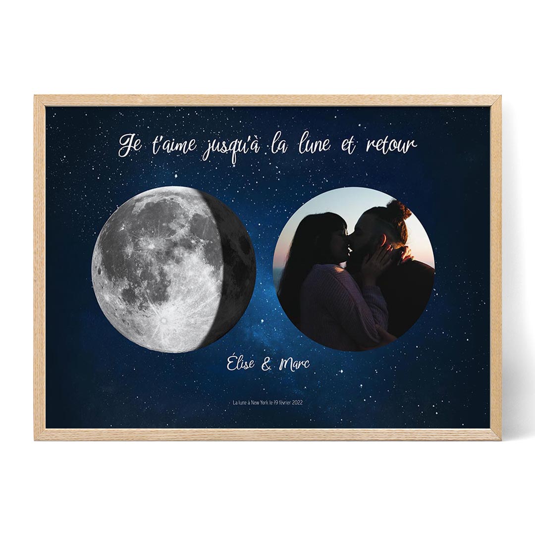 - Souvenez-vous d'un moment spécial avec une impression de phase de lune de votre date et lieu