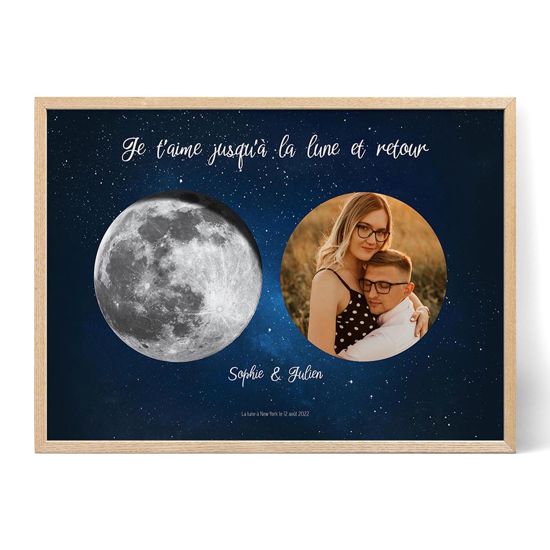 - Souvenez-vous d'un moment spécial avec une impression de phase de lune de votre date et lieu