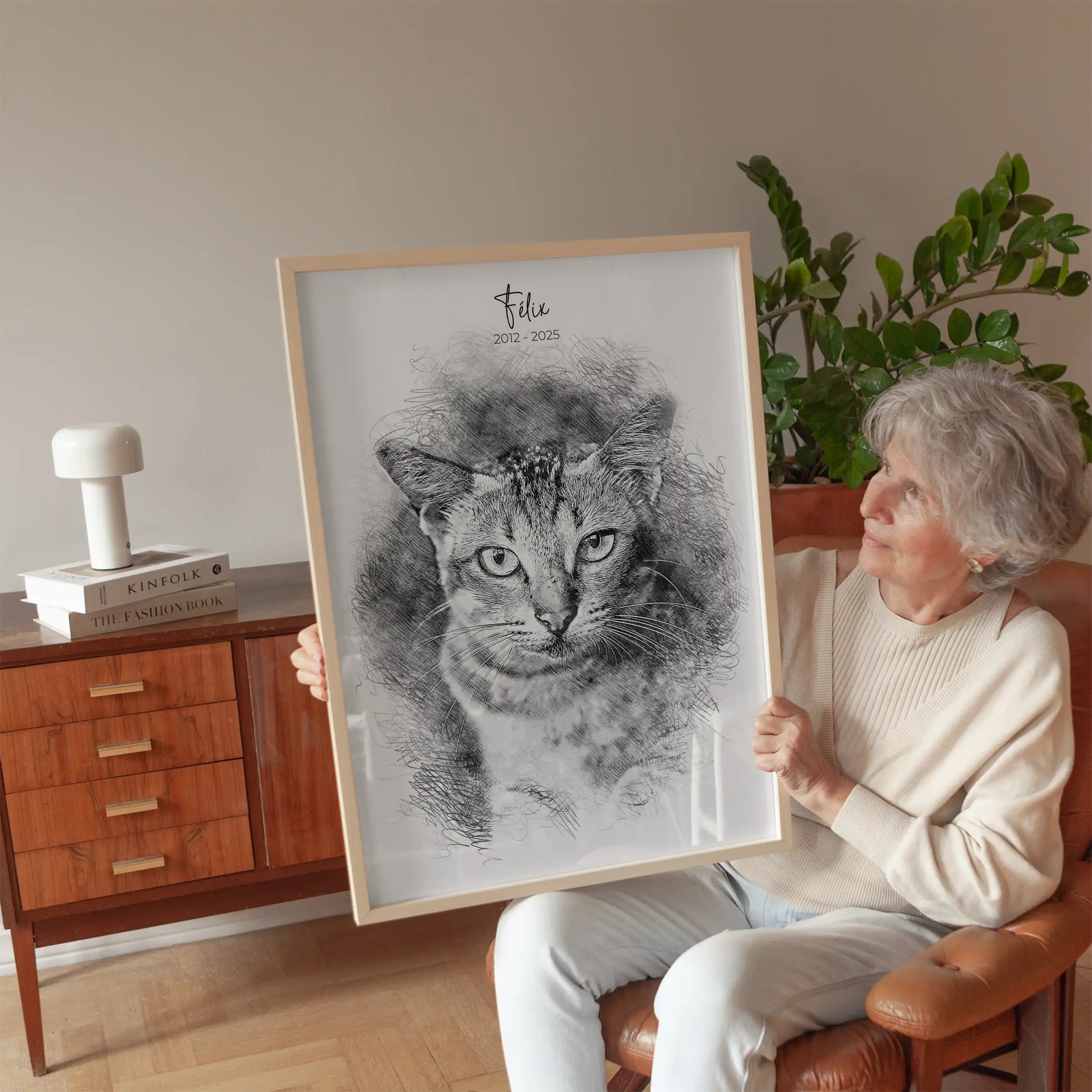 Notre portrait imprimé « À la mémoire » constitue un cadeau profondément significatif, commémorant avec élégance un animal de compagnie bien-aimé qui nous a quittés.