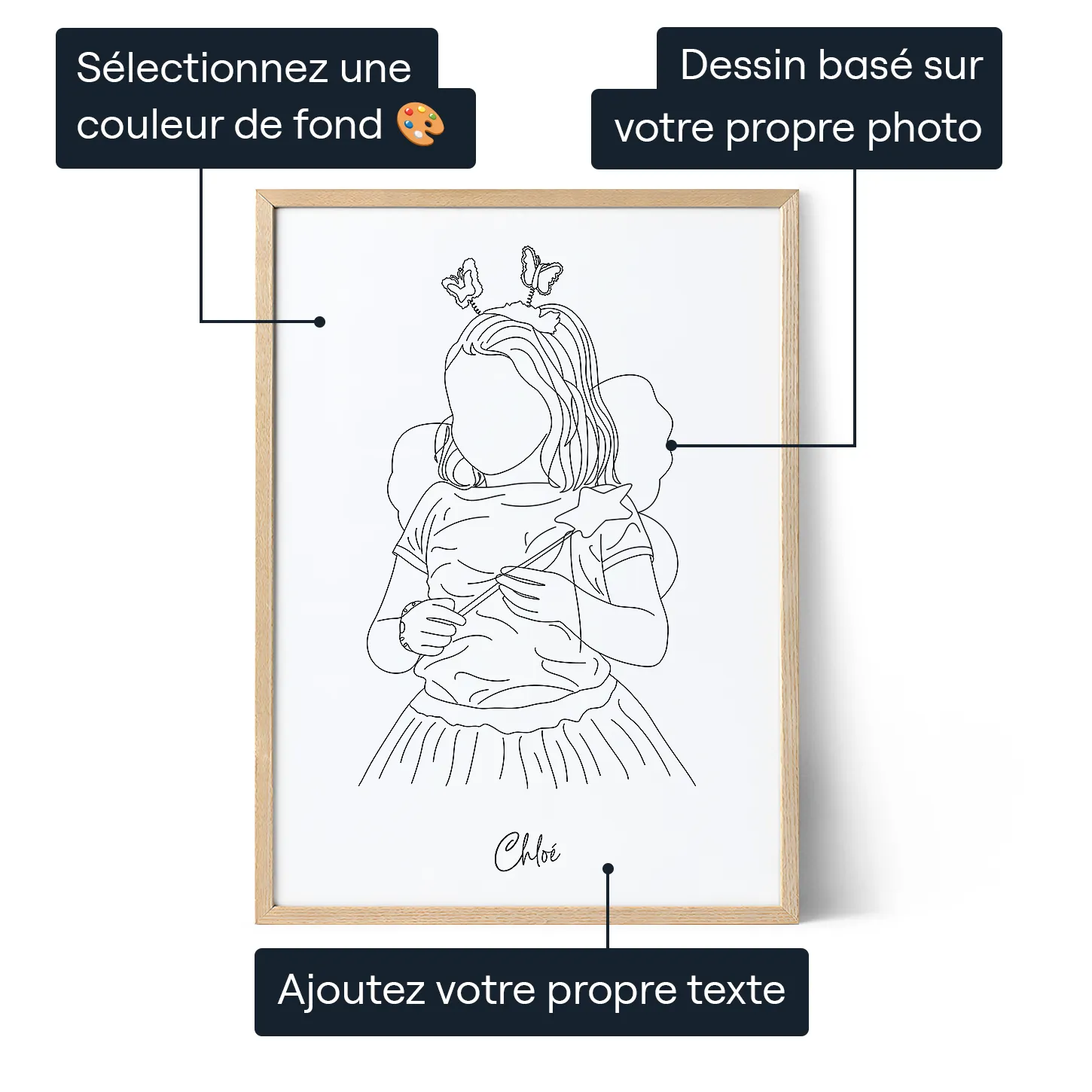 Portrait Fille - Affiche Line Art à partir d'une photo