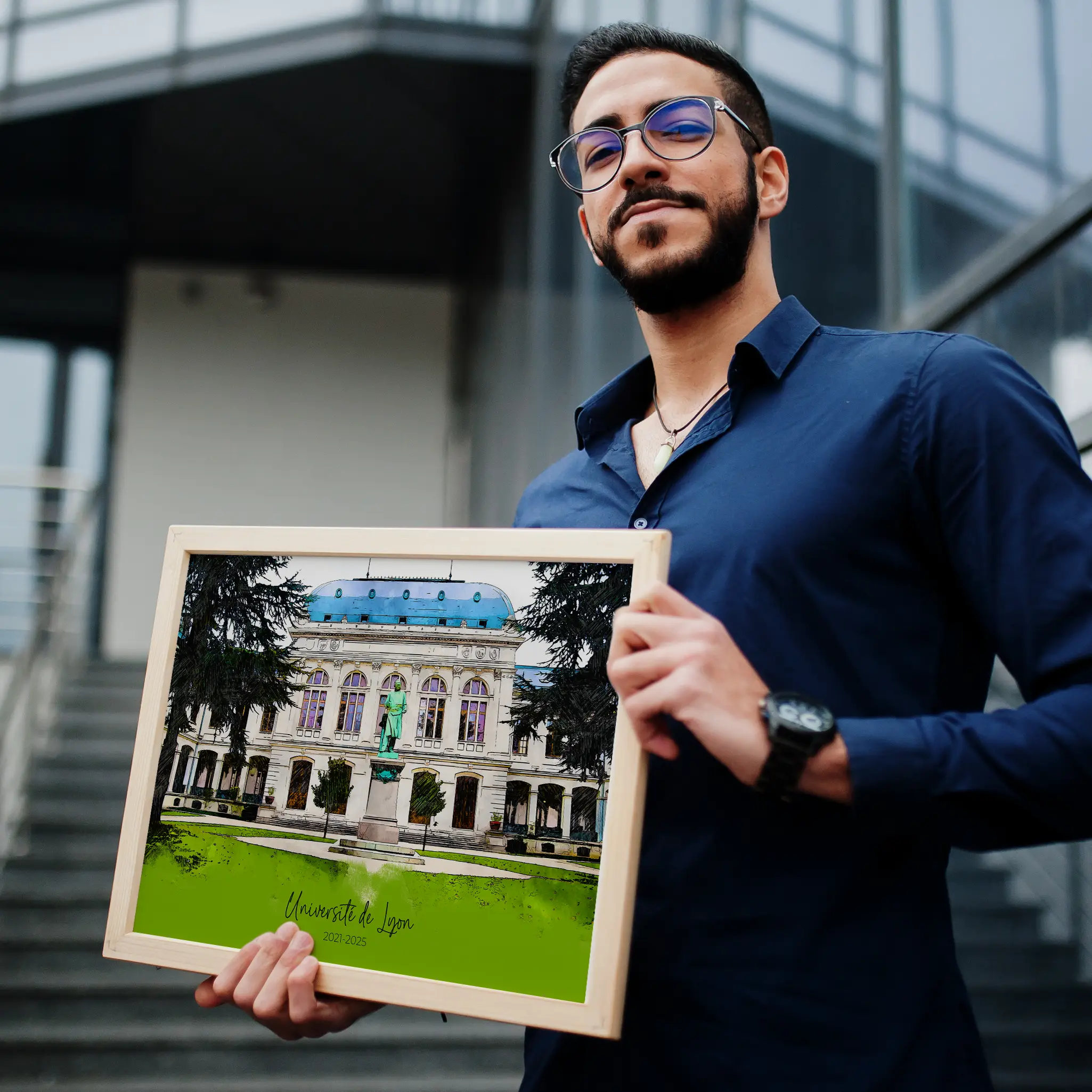 Transformez une photo de votre université en un portrait unique à l'aquarelle numérique. Le cadeau personnalisé idéal pour les anciens élèves, ou les professeurs.