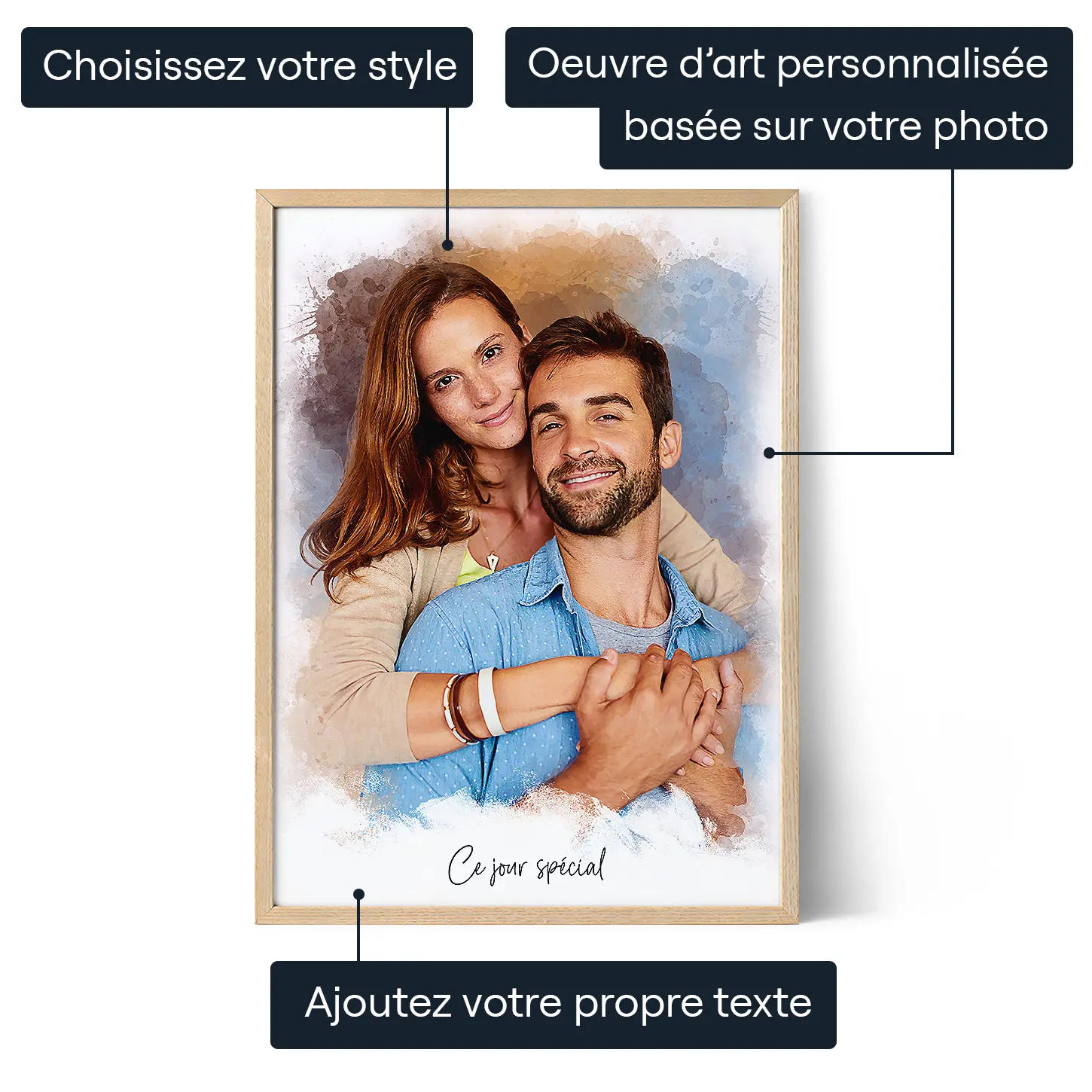 Transformez votre photo préférée en un magnifique portrait personnalisé, imprimé sur un poster ou une toile premium. Un cadeau unique et plein de sens