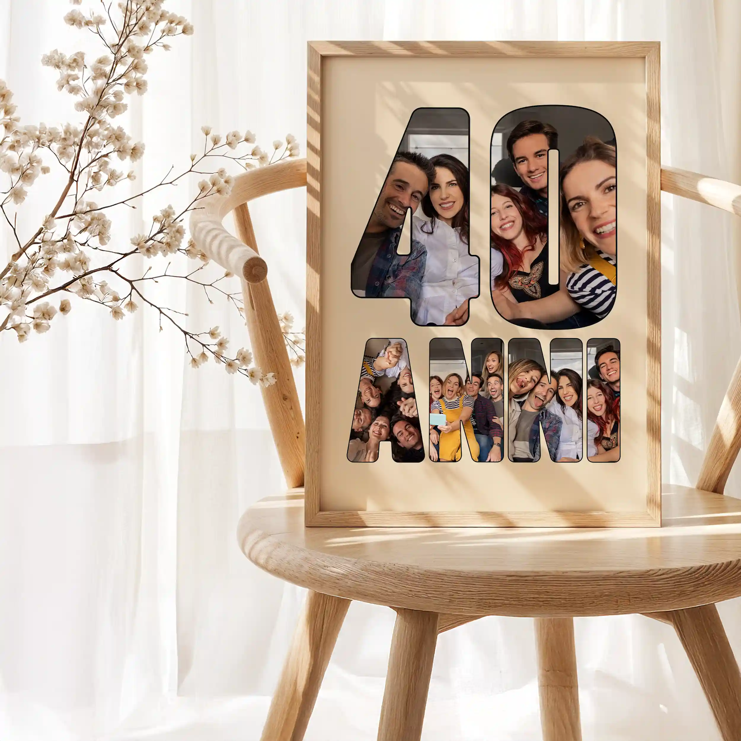 Prendi le foto dei suoi primi 40 anni di vita e costruisci un collage artistico personalizzato che omaggia ricordi, traguardi e momenti speciali. Dai vita a un amorevole regalo di compleanno!