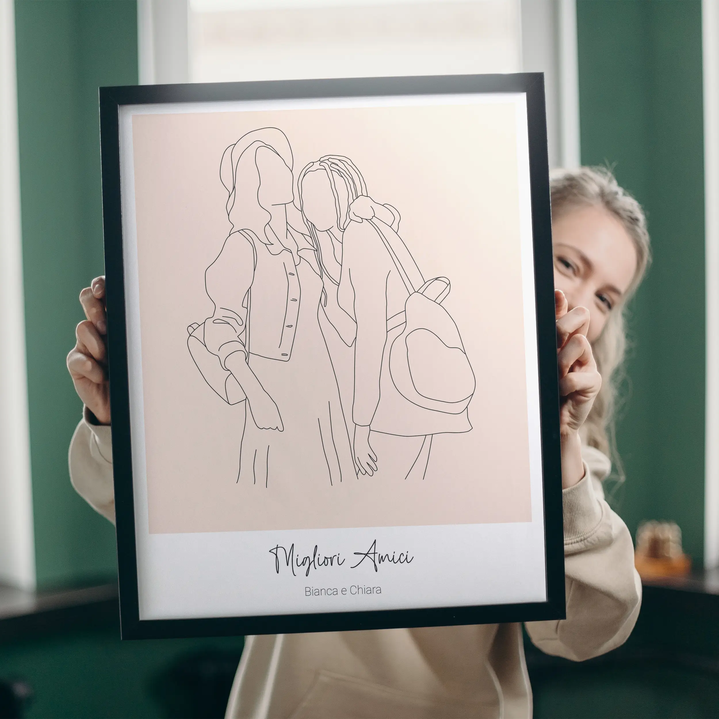 Amici Line Art non è solo un regalo per gli amici. È una celebrazione della gioia e della connessione delle amicizie. È un modo unico per esprimere la tua gratitudine e creare un ricordo duraturo. Ordina subito il tuo Amici Line Art e onora il legame speciale tra te e i tuoi amici con un capolavoro personalizzato che cattura l'essenza della tua amicizia.