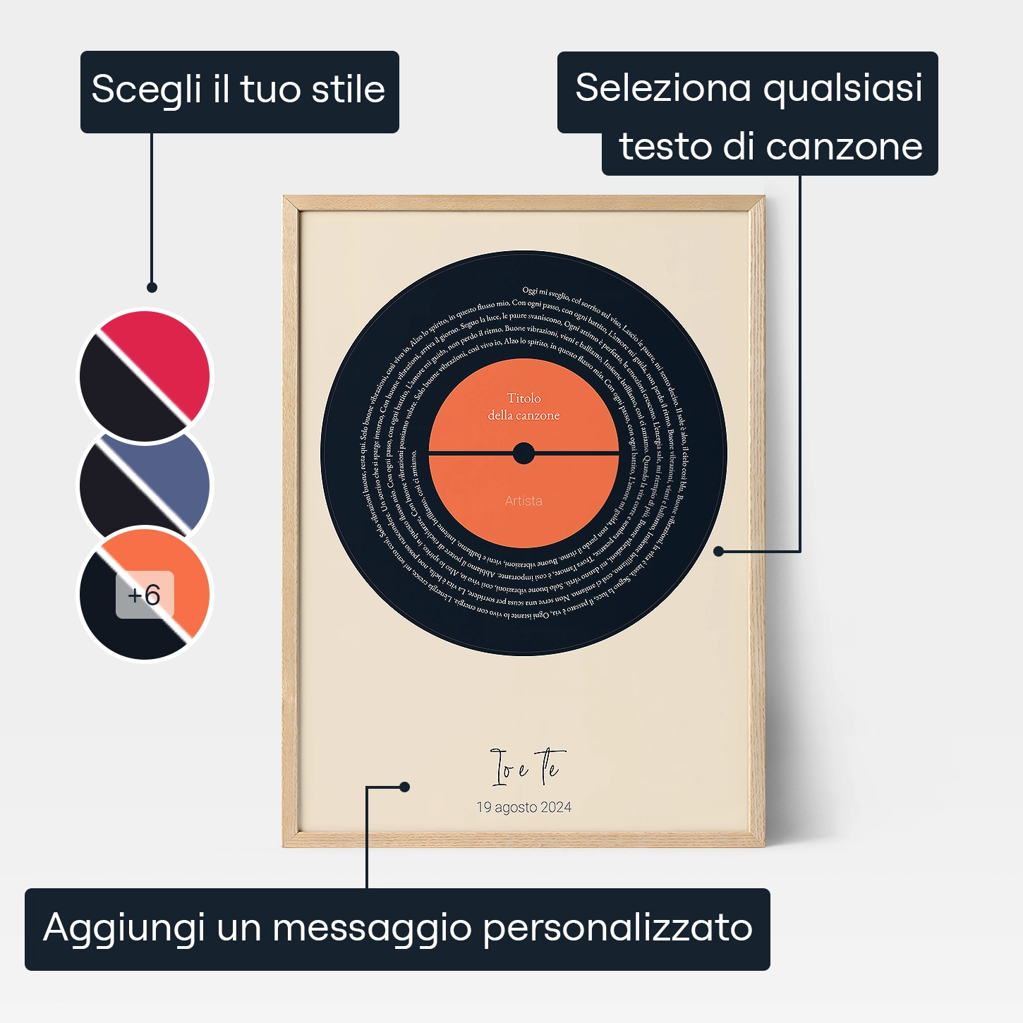 - Personalizza usando il testo di una canzone o un messaggio personalizzato