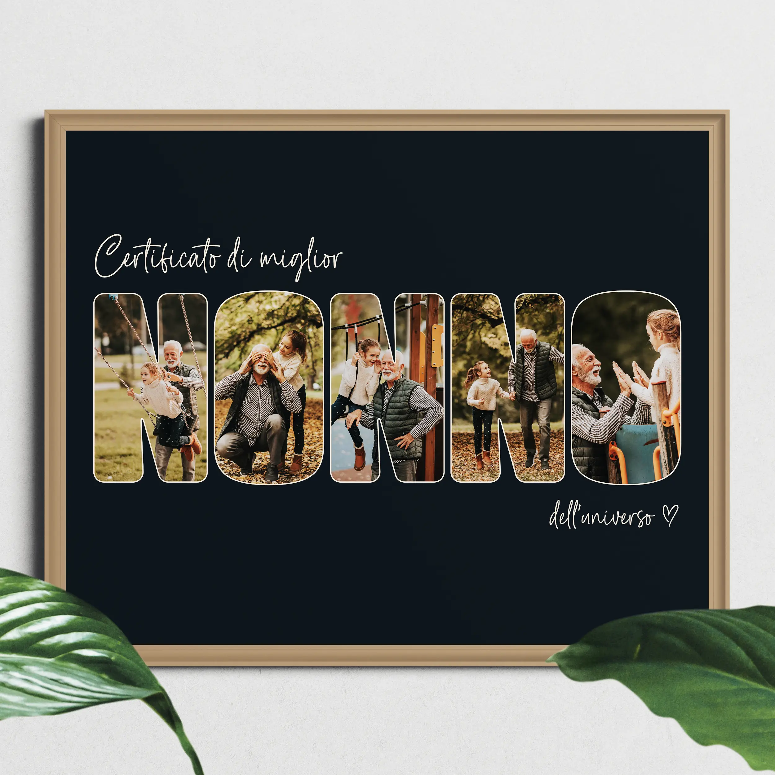 Un fotocollage che celebra i momenti più speciali trascorsi insieme. Un regalo che racchiude l’affetto, la forza e la saggezza che solo un nonno può trasmettere