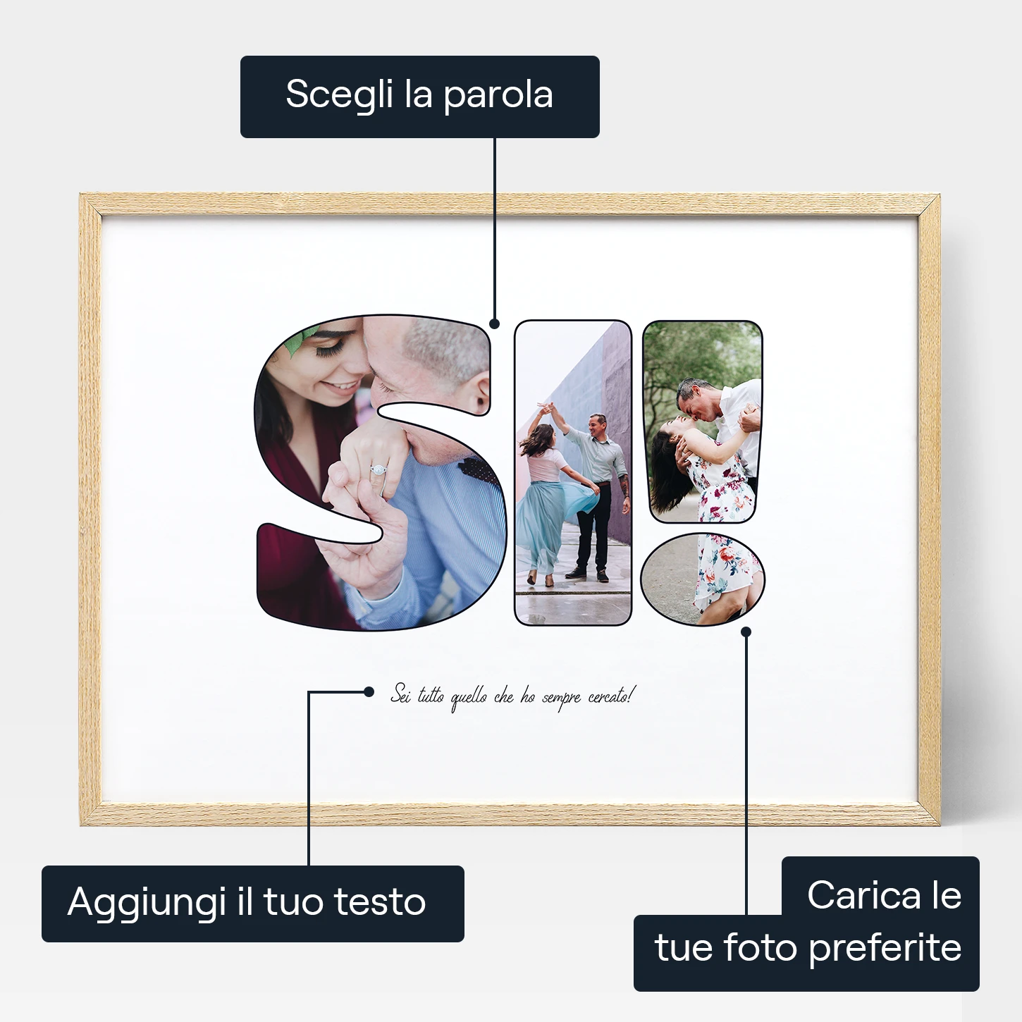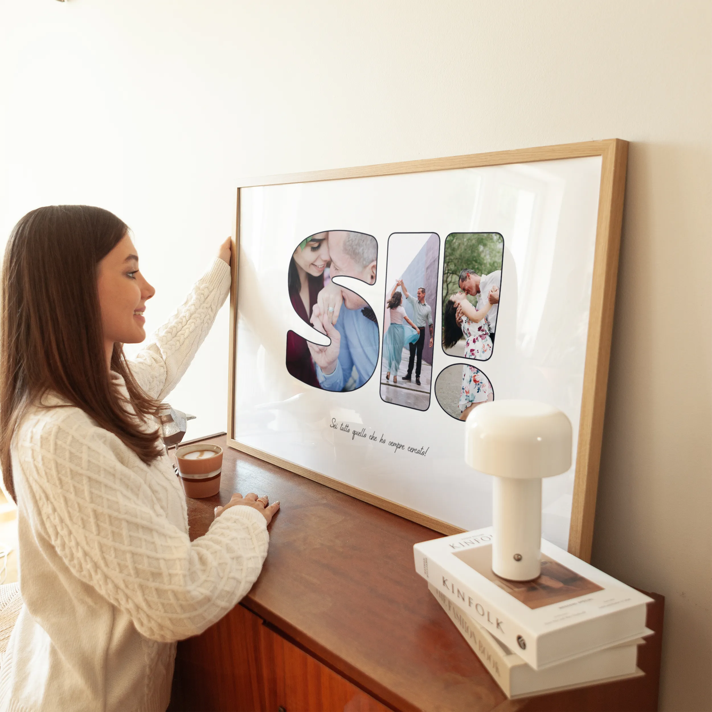 Perciò, festeggia il tuo fidanzamento con un Collage di Foto di Fidanzamento a Forma di Lettere. È un regalo che ruota attorno alla vostra storia d’amore e i preziosi momenti che avete condiviso insieme. È una stampa da guardare ogni volta che avrete bisogno di supporto. Libera la tua creatività, condividi la tua storia e crea un regalo che verrà custodito per sempre.