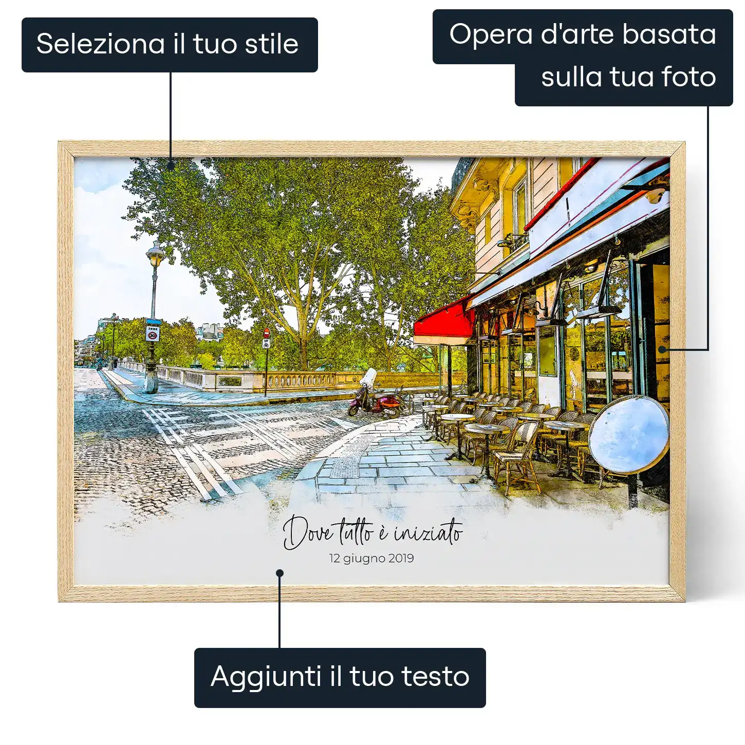 Celebra il luogo in cui la tua storia ha avuto inizio, scegliendo un ritratto ad acquerello personalizzato: un ricordo elegante e su misura che porta in casa i ricordi più dolci.