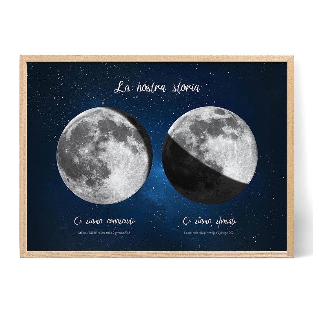 Cerchi un modo unico e significativo per celebrare la tua storia d'amore? *Fasi Lunari del Nostro Incontro e Matrimonio* è una stampa personalizzata che cattura magnificamente i momenti speciali del vostro primo incontro e del vostro matrimonio. Questa opera d'arte squisita presenta due fasi lunari: una del giorno in cui vi siete incontrati e una del giorno del vostro matrimonio. È un modo affettuoso per onorare il vostro viaggio insieme e creare un ricordo duraturo del vostro amore.