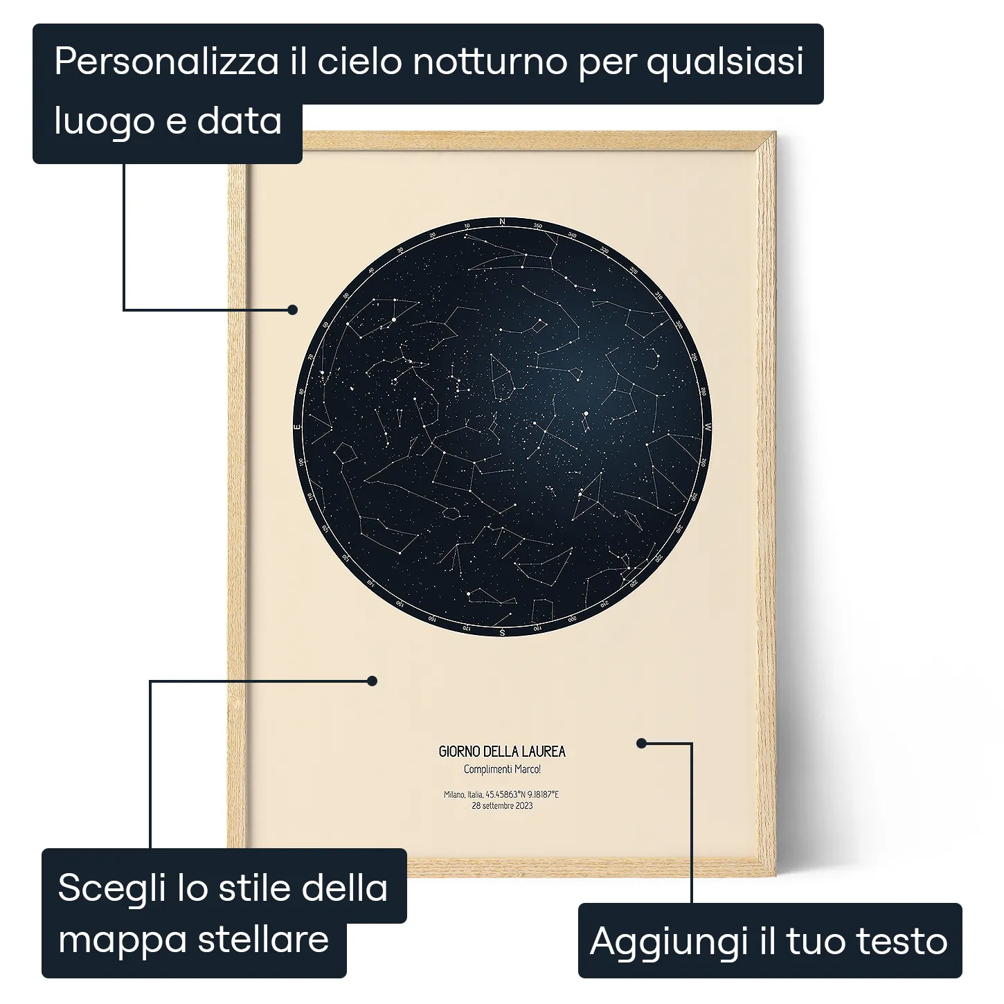 - Crea una mappa stellare personalizzata basata luogo e data scelti da te