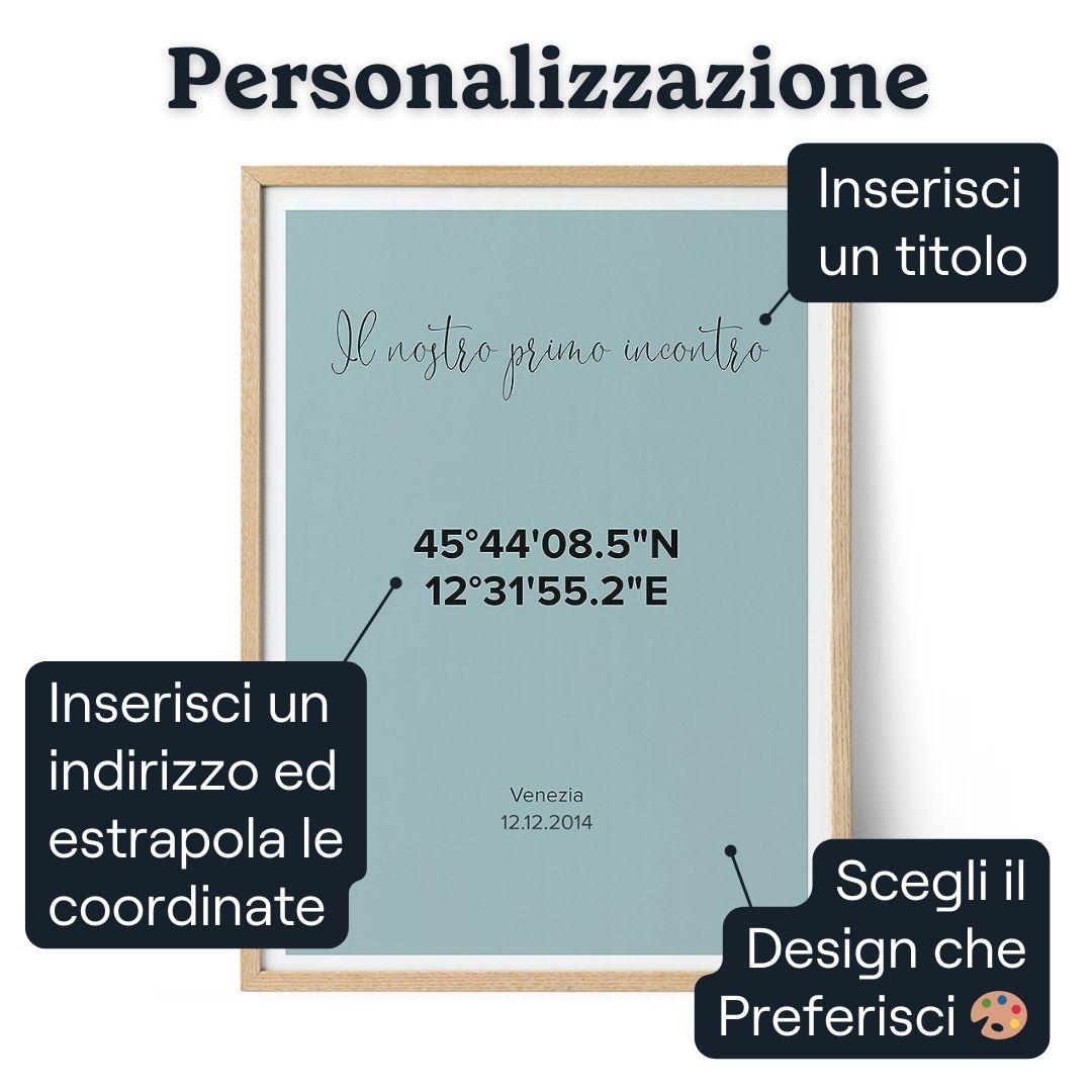 - Rendi tangibile l'amore per la tua famiglia con un'opera d'arte che ritrae le coordinate geografiche di dove vivete