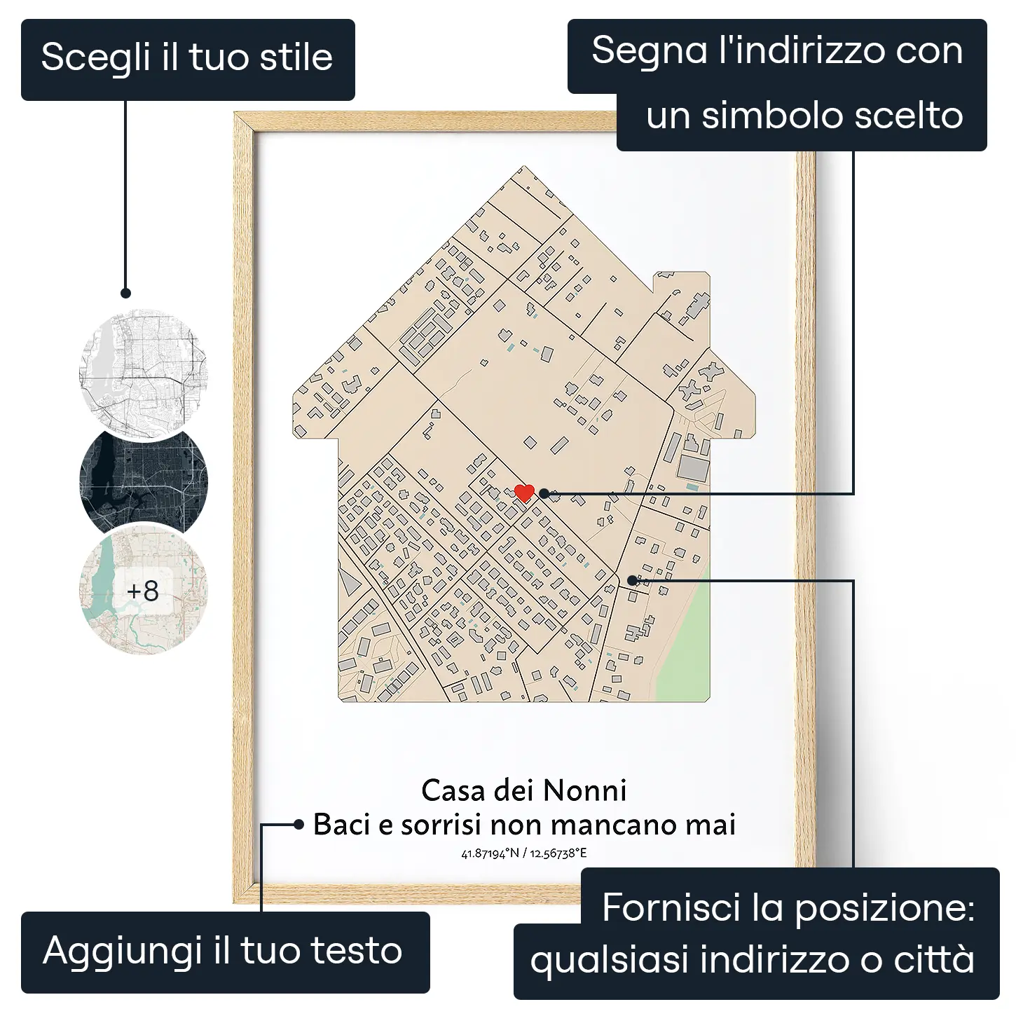 Offriamo la personalizzazione gratuita su ogni ordine, così ogni prodotto è unico e perfettamente in linea con le tue preferenze. Il nostro editor online, facile e intuitivo, ti permette di creare la tua opera d’arte personalizzata in pochi passaggi, sia da computer che da cellulare. E con l'anteprima interattiva, puoi vedere il risultato in tempo reale e perfezionare ogni dettaglio prima dell'acquisto.