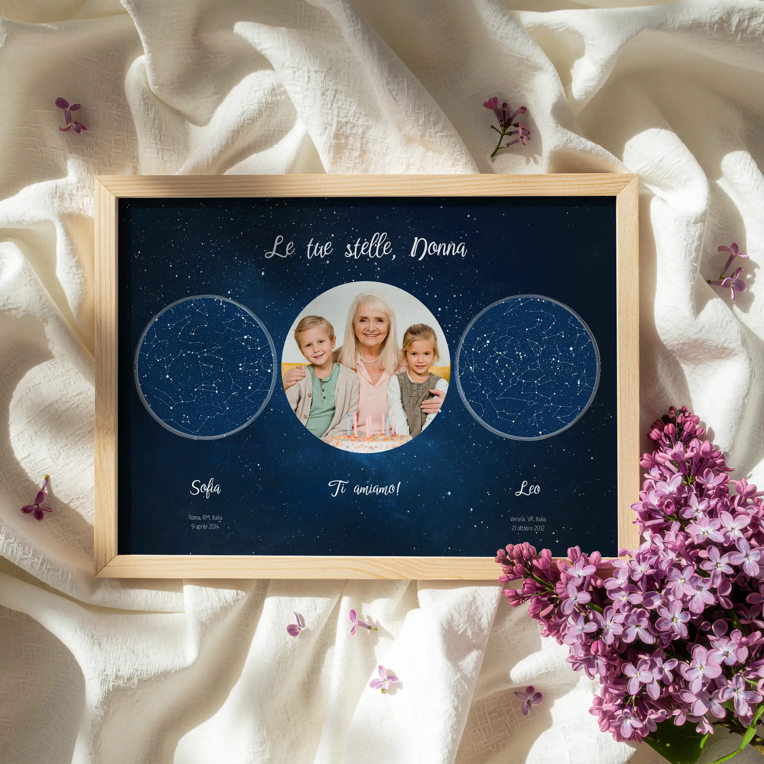 Festeggia i momenti esatti in cui ha conquistato lo status di Nonna: crea mappe stellari che mostrano il cielo nei giorni della nascita dei suoi nipotini