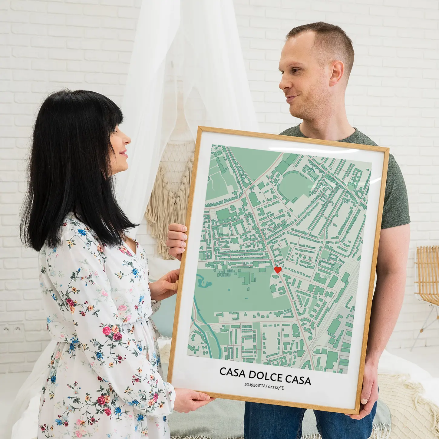 Una Mappa dei Nuovi Inizi rappresenta un luogo ricco di significato, per te o una persona a cui vuoi bene. Potrebbe essere una mappa della città o del Paese in cui il tuo amico si sta trasferendo. Oppure, potrebbe essere una mappa del luogo in cui avete condiviso insieme ricordi speciali. Che si tratti di una casa d'infanzia, di una località di vacanza o di una città che avete sempre sognato di visitare. La possibilità di personalizzare la mappa con un titolo o testo la rende un regalo ancora più personalizzato. La bellezza della nostra stampa sta nel fatto che può essere personalizzata per riflettere il vostro legame e le esperienze vissute insieme.
