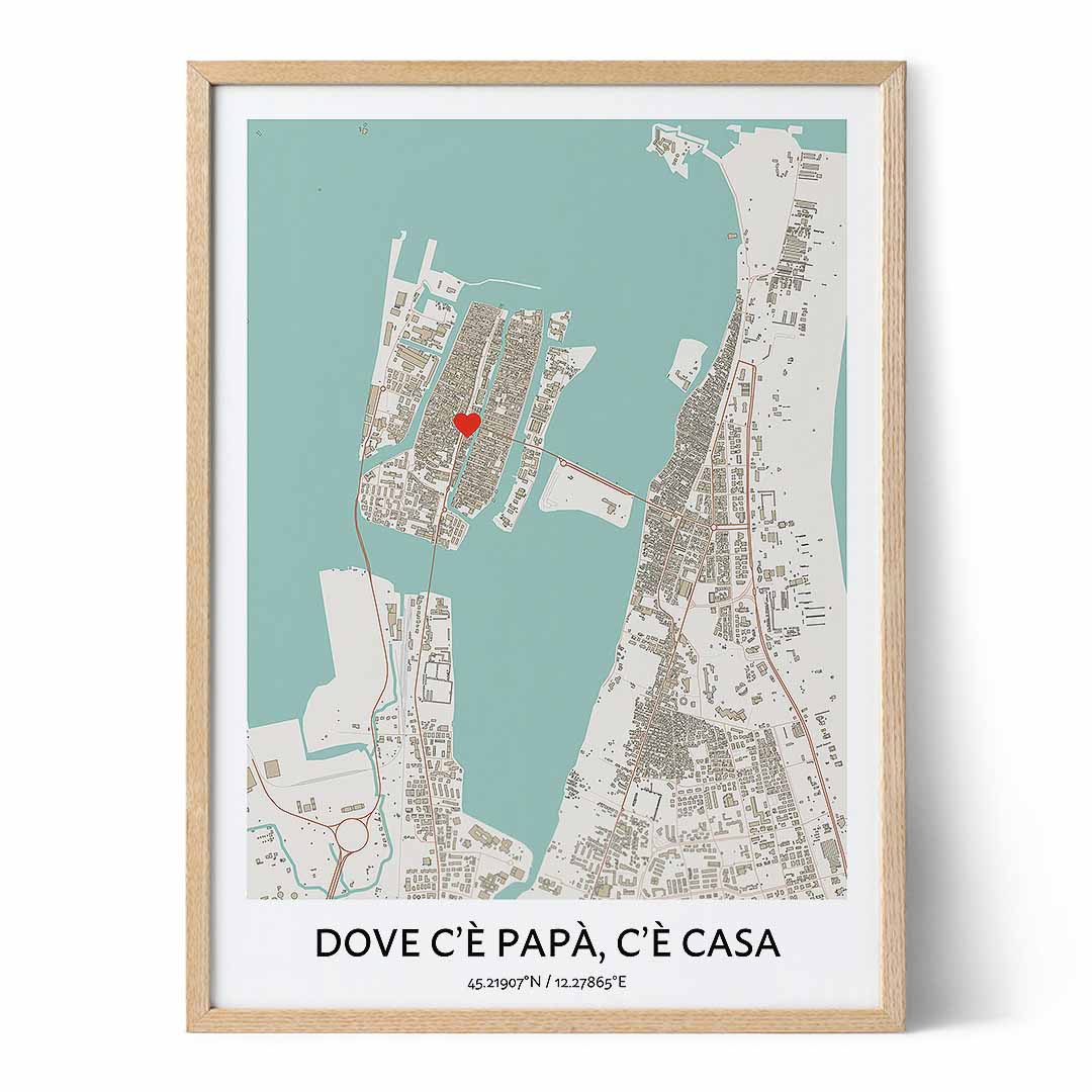 Con questa bellissima mappa puoi rappresentare un luogo a tua scelta con tutti i dettagli che troveresti su una cartina geografica. Inserisci un indirizzo per far apparire l'indicatore proprio sul luogo che chiami casa, così da dimostrare al tuo papà quanto lui sia importante per te. Queste mappe sono perfette per la Festa del Papà perché puoi personalizzarle così tanto da farlo sentire più speciale che mai.
