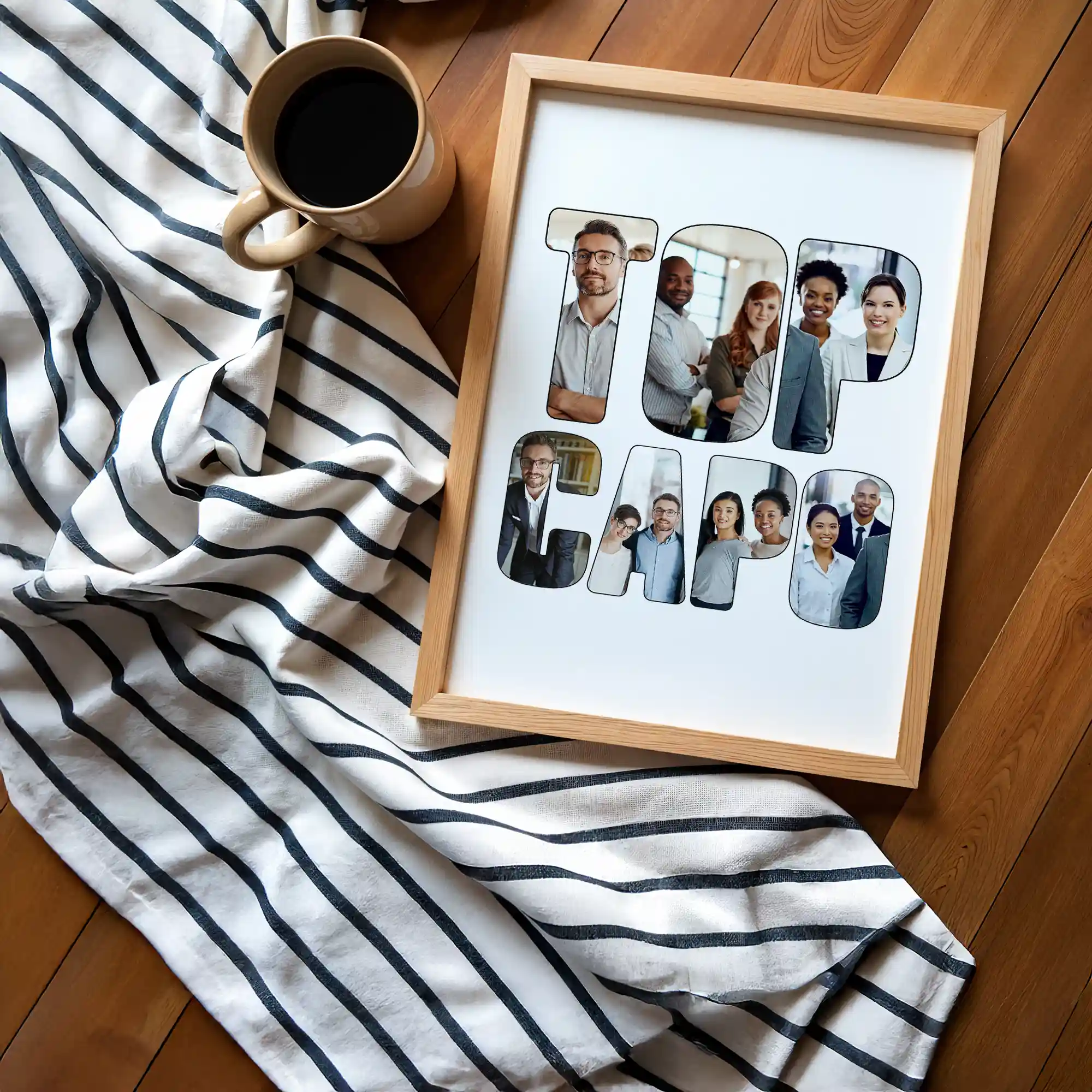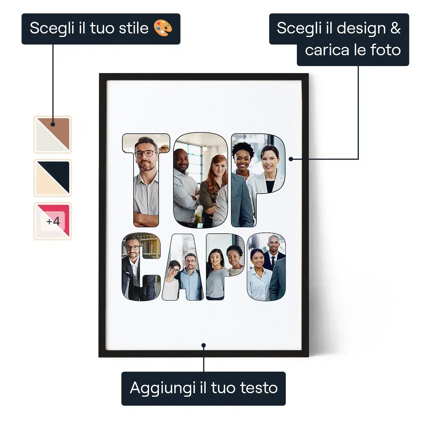 Trasforma i ricordi di un team e i momenti vissuti sul posto di lavoro in un collage artistico personalizzato che celebra la leadership e i risultati in un ricordo unico