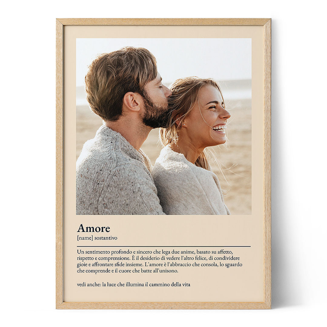 Se stai cercando un modo sincero e unico per esprimere il tuo amore, il nostro Poster di Definizione dell'Amore è il regalo personalizzato perfetto. Cattura l'essenza della tua relazione con una definizione personalizzata e una foto che parla da sé.