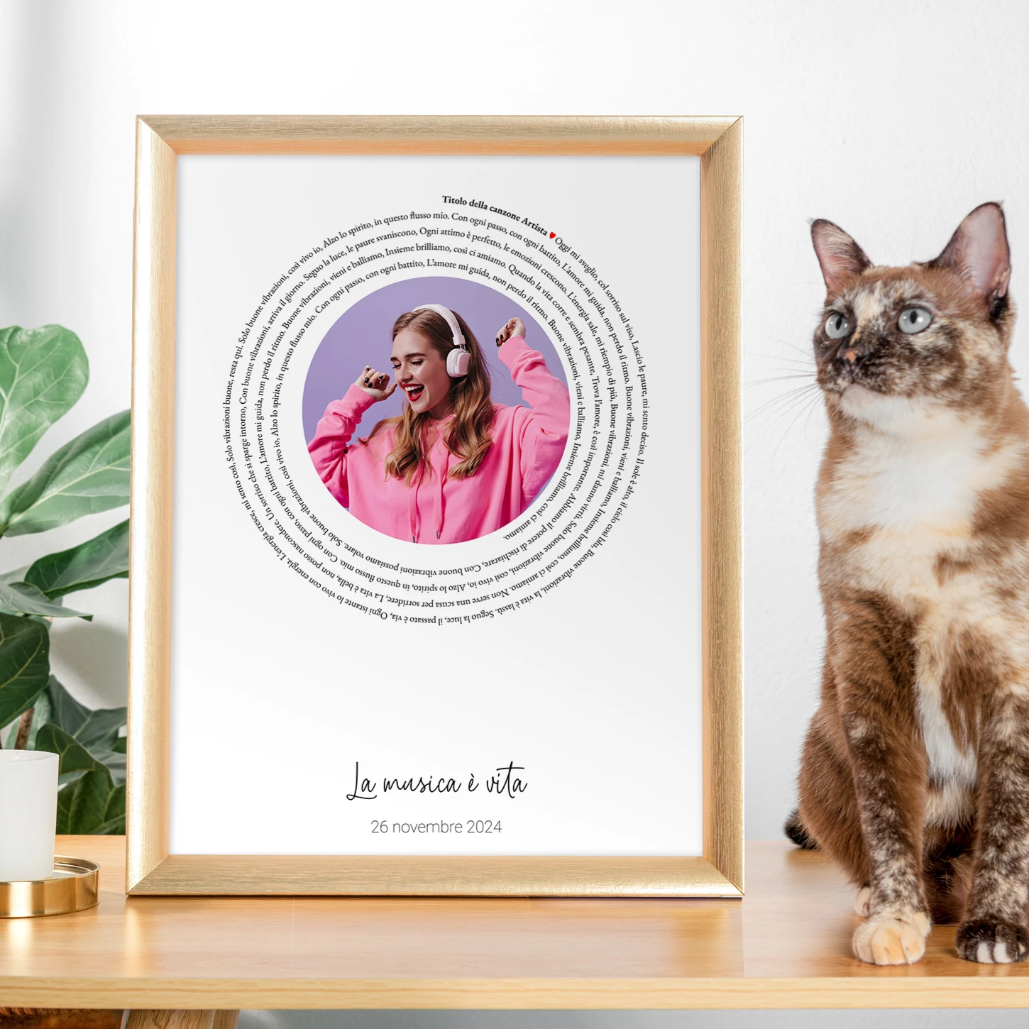 - Personalizza la tua opera scegliendo una canzone – prenderemo il testo e lo disporremo artisticamente sul design