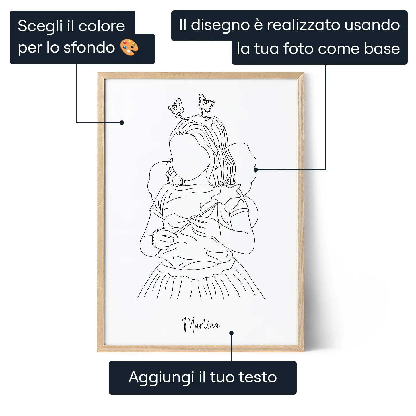 Trasforma una bella foto in un delicato ritratto line art capace di catturare il suo spirito così unico. Crea un ricordo intramontabile e significativo per ogni occasione