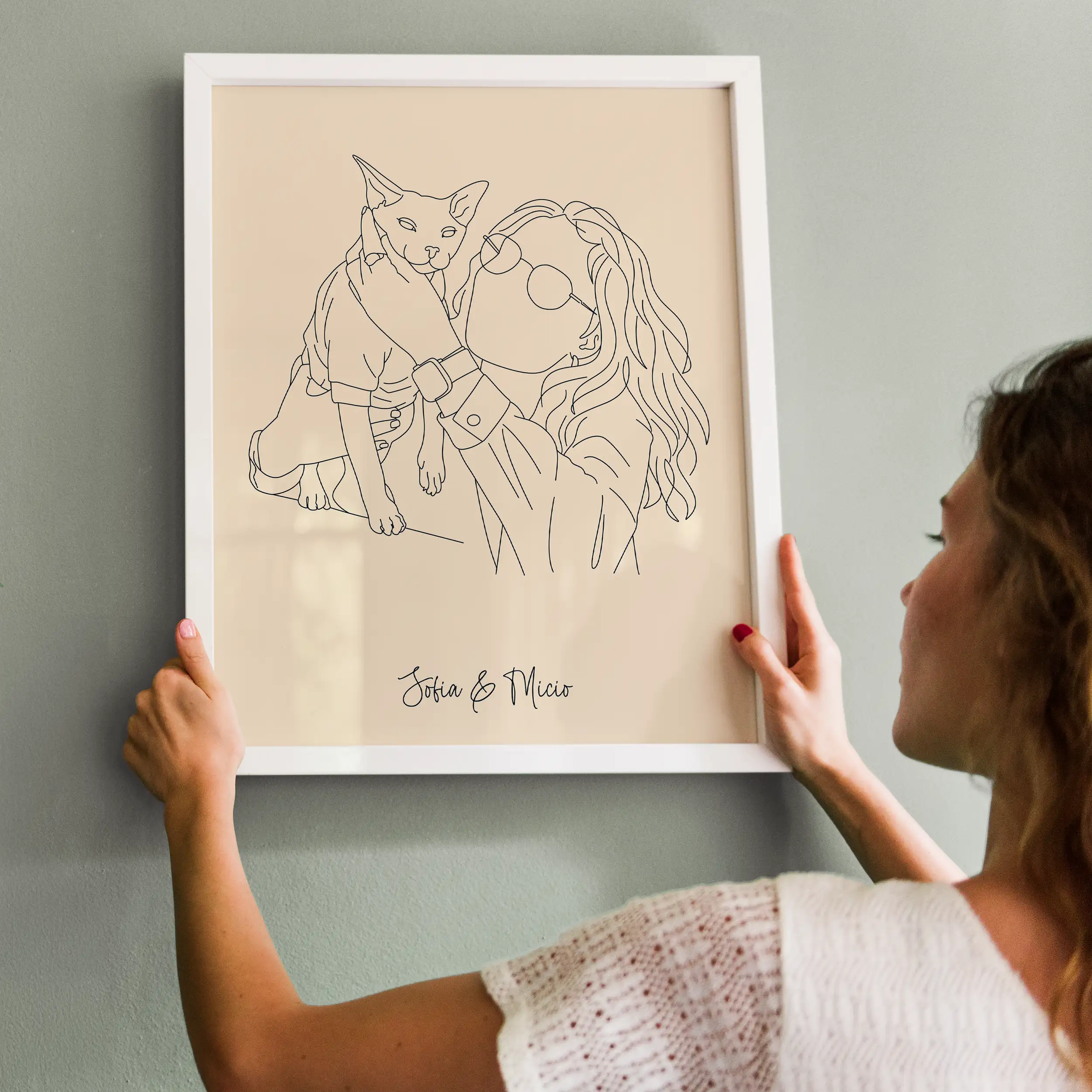 Ritratto Line Art "Io e il mio gatto” - Poster da foto
