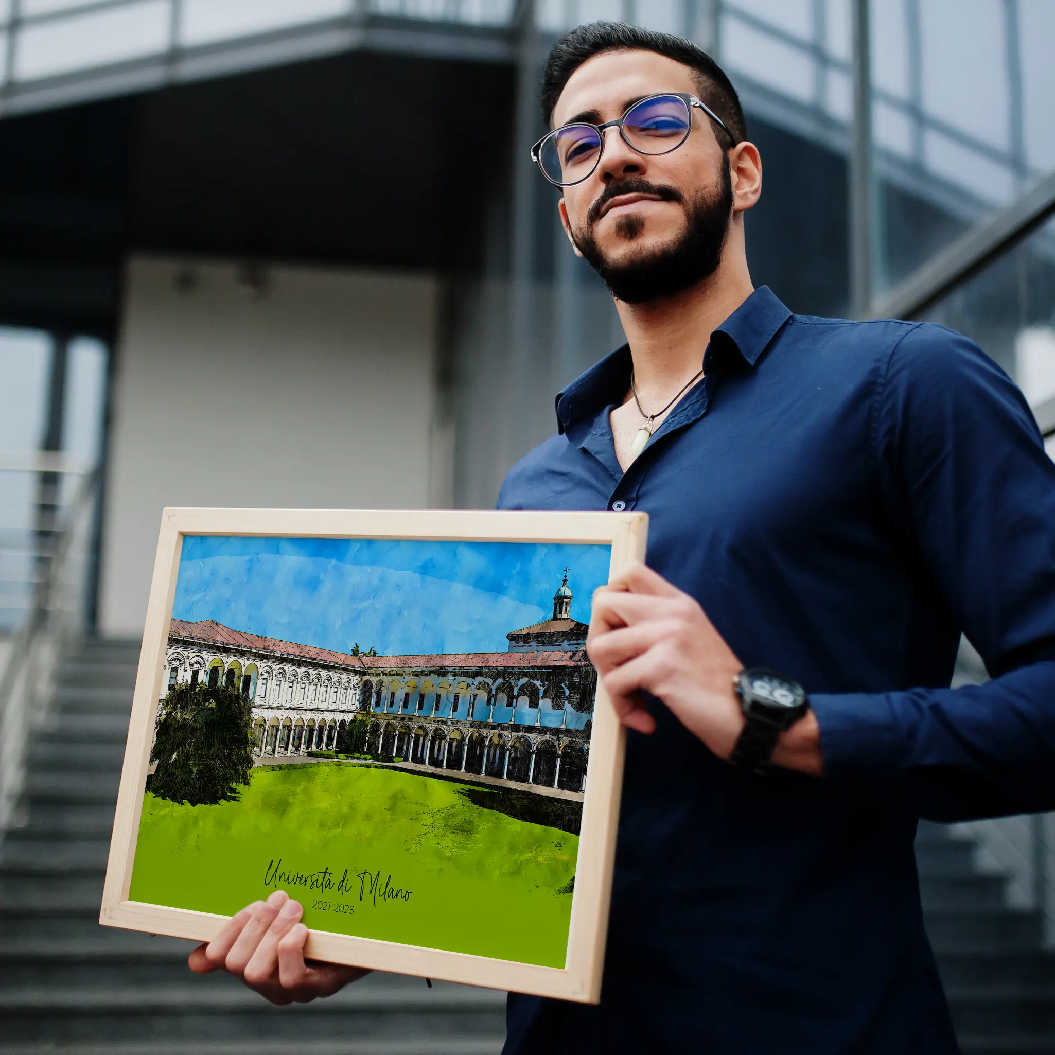 Trasforma la foto della tua università in un esclusivo ritratto digitale ad acquerello. Questo è il regalo personalizzato perfetto per ex studenti o professori!