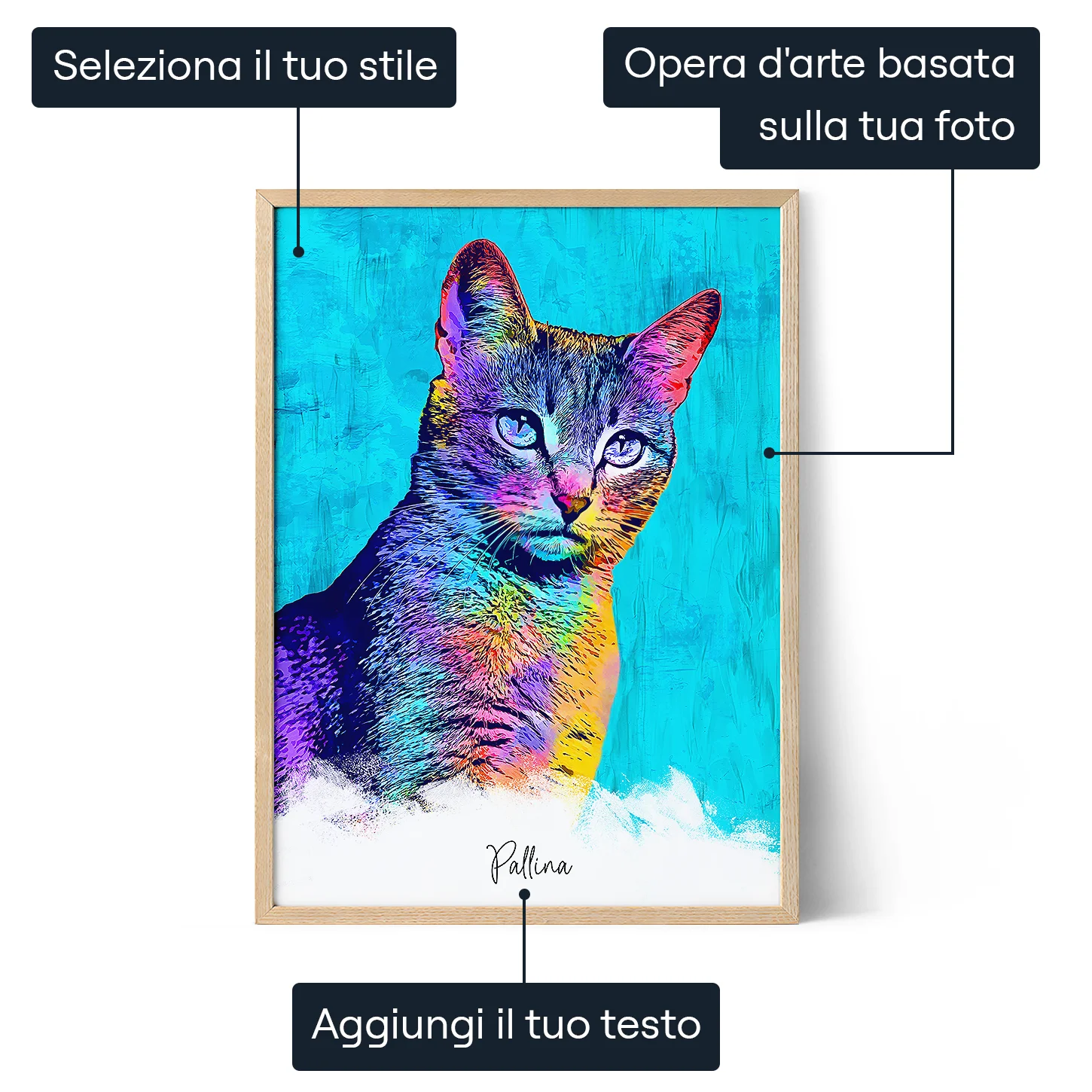 Carica la tua foto con un clic: il nostro talentuoso artista penserà a tutto il resto, realizzando un'illustrazione unica del tuo amato animale domestico.