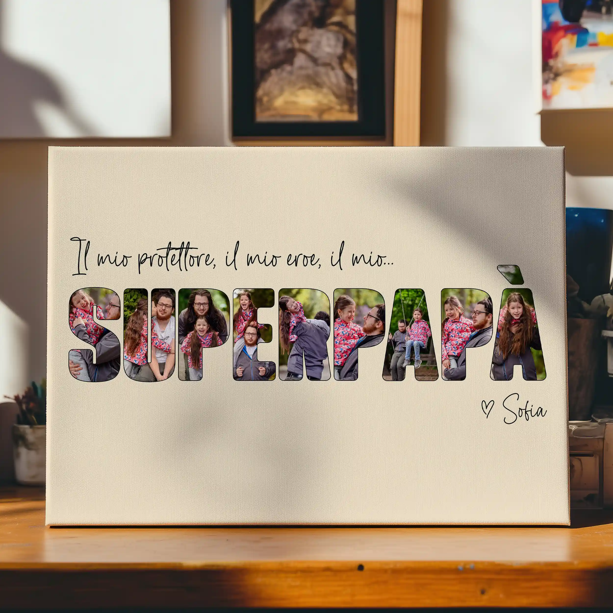 Un regalo personalizzato che mostra quanto il tuo papino sia straordinario. Riempilo con le tue foto preferite per celebrare l'eroe di tutti i giorni che chiami papà