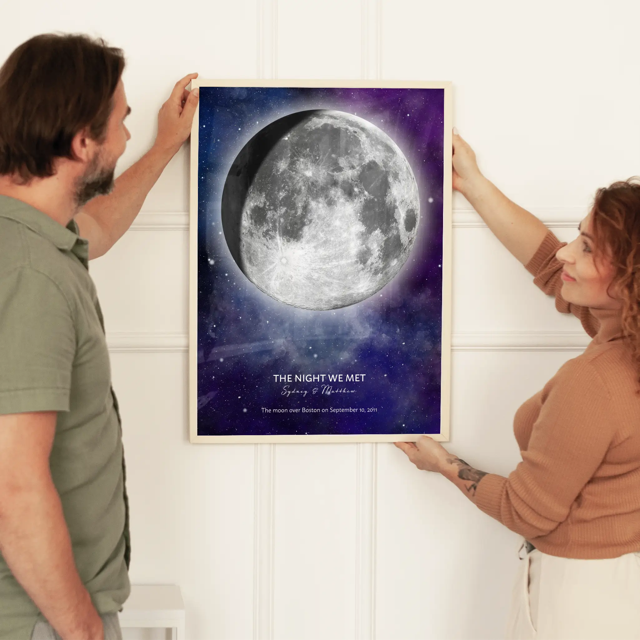真実の愛に出会った夜、これから芽生える愛の証人はあなたたちだけではなかった。 夜空に浮かぶ月もそれを見ており、多くのカップルにとって、その夜は人生で最高の夜のひとつとなった。 Positive Printsのムーンカップルギフトで、その瞬間を永遠に残そう。