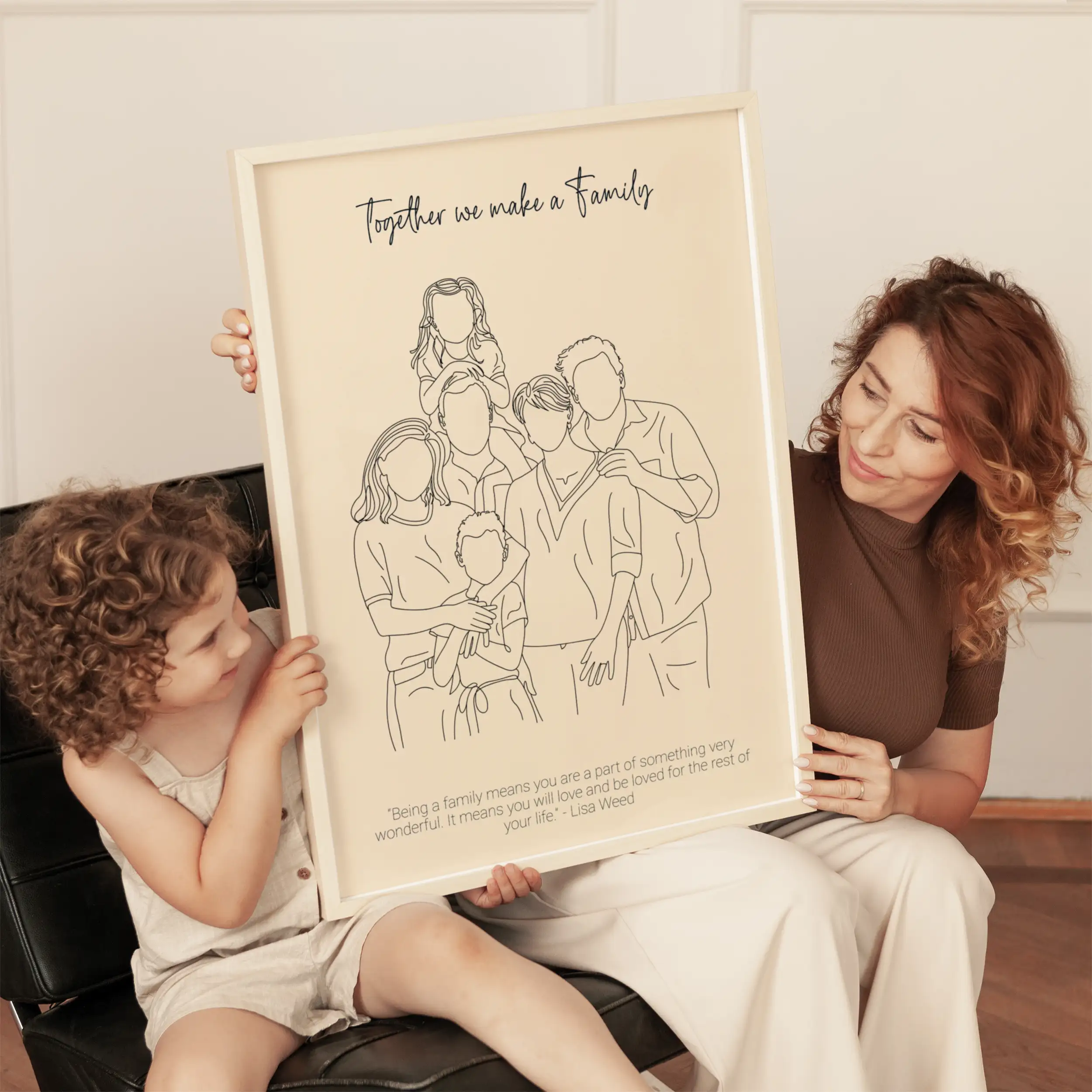 ファミリー・ラインアートは単なる家族への贈り物ではなく、愛と団結、そして共有の瞬間を祝うものなのだ。 家族の絆を表現し、永遠の思い出を作るユニークな方法だ。 今すぐファミリー・ライン・アートを注文して、家族のエッセンスをとらえたパーソナライズされた傑作で、特別なつながりを記念しよう。