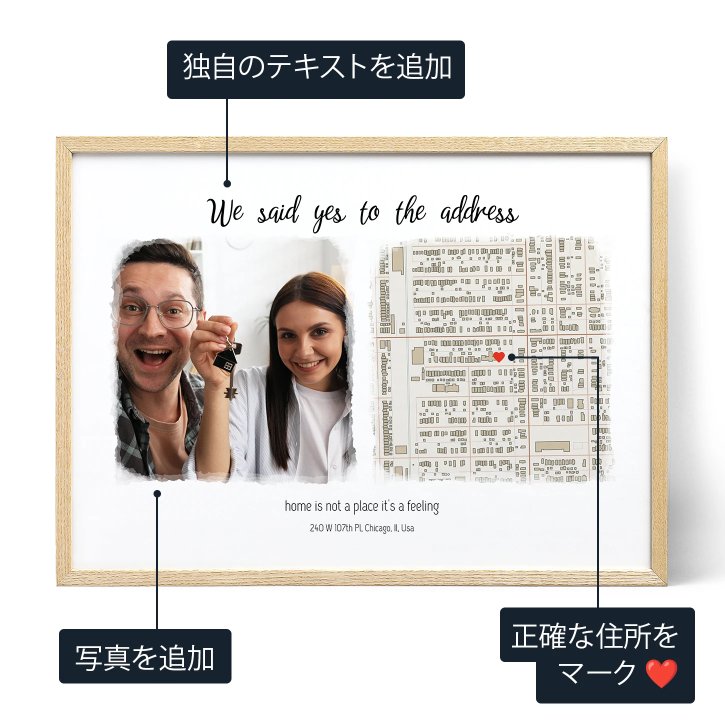 私たちは住所にイエスと言った - パーソナライズされた新居地図ポスター