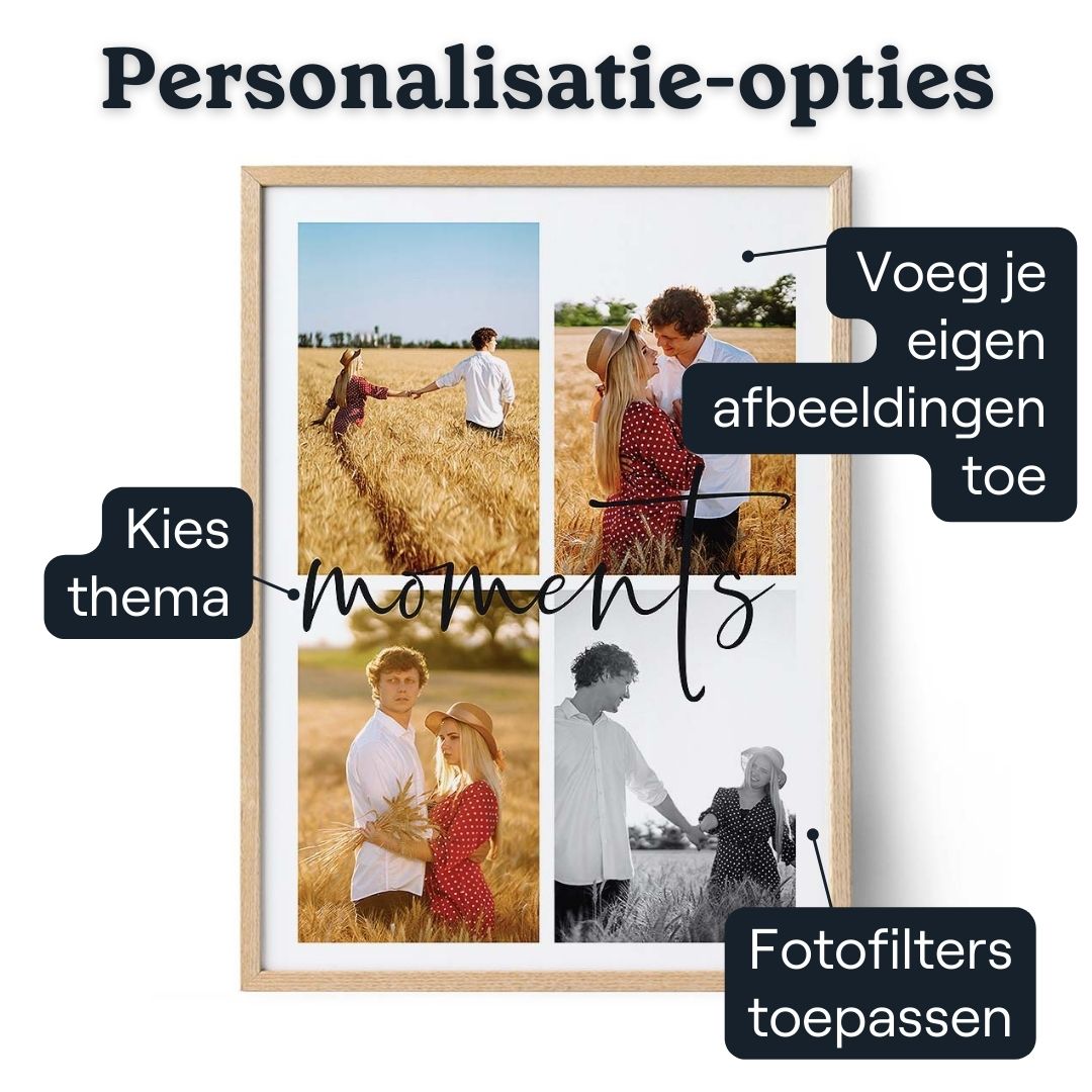 Zodra de foto's zijn geplaatst, kies je de perfecte weergaveoptie om hun collage te laten zien. Of je nu kiest voor een afgedrukte poster, een ingelijst meesterwerk, canvas of een directe digitale download, elke keuze biedt een unieke manier om hun prestaties te koesteren. Met slechts een paar eenvoudige stappen kun je een hartverwarmend cadeau maken dat hun harde werk en toewijding viert.