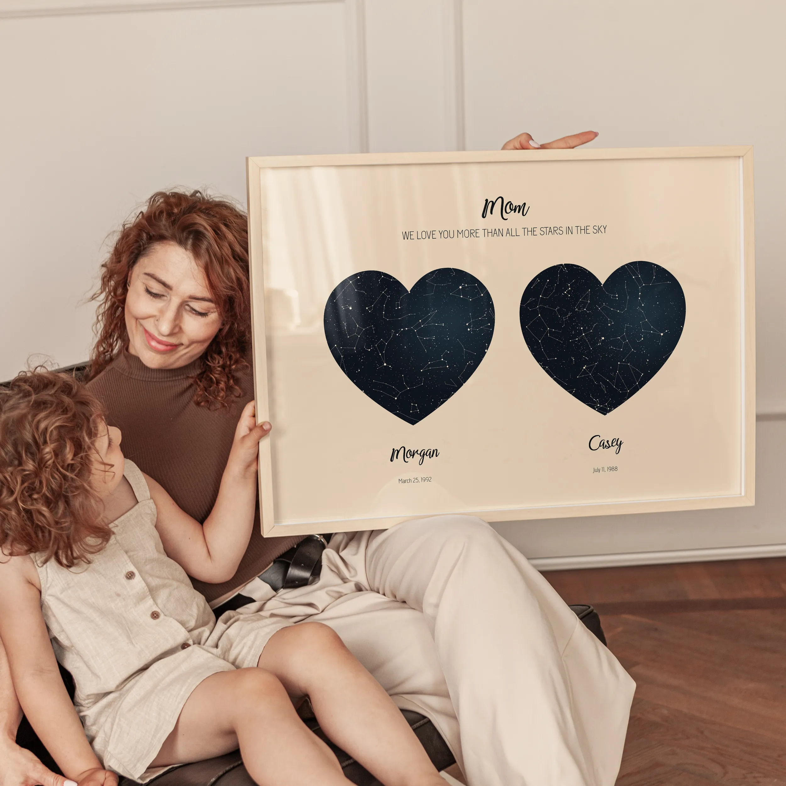 Laat elke moeder zich speciaal voelen met een prachtige weergave van de nachtelijke hemel op de geboortedatum van haar kinderen.