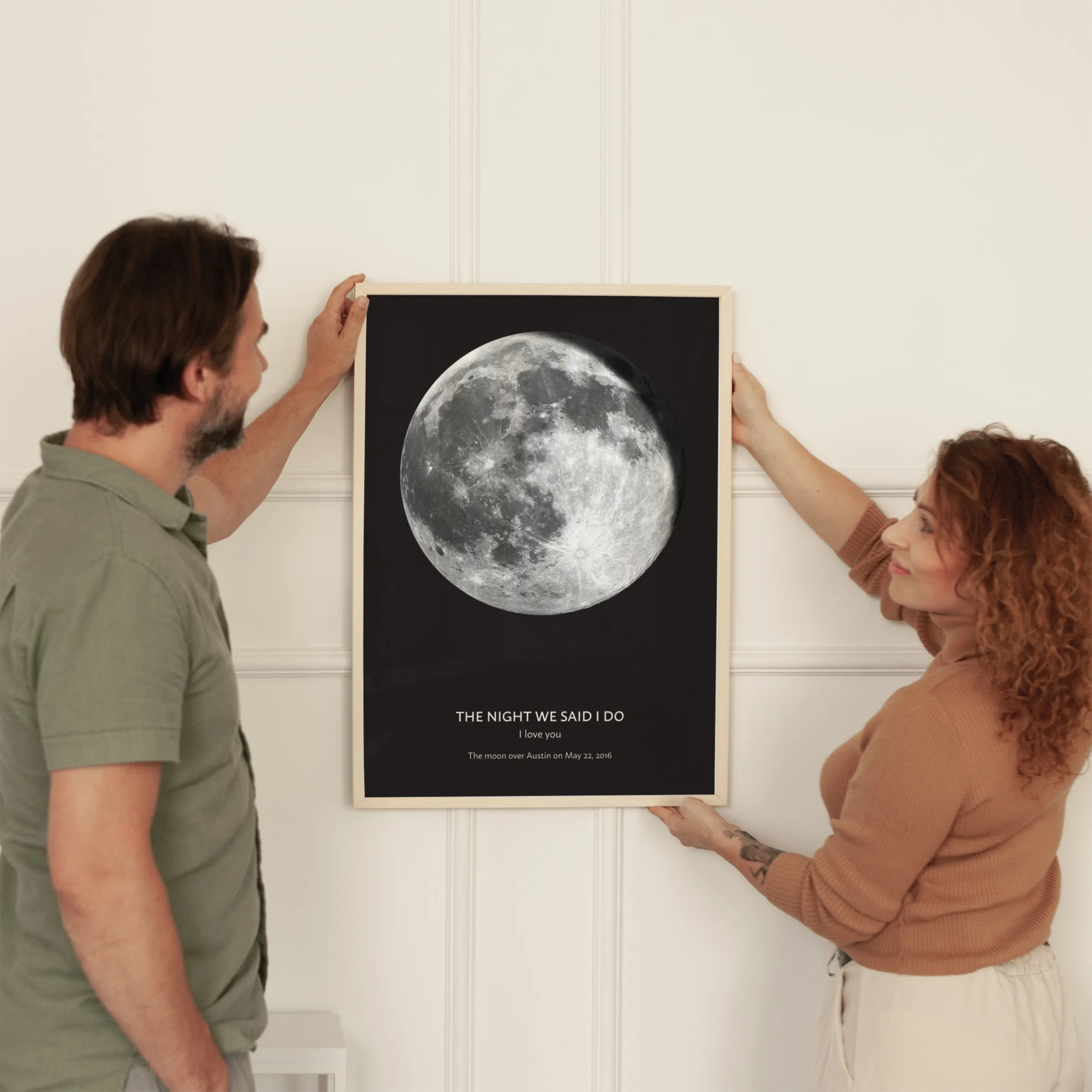 Aangepaste maanfase poster brengt je terug naar je favoriete nachten. Nu kun je je helderste momenten en beste herinneringen koesteren onder een identieke hemel! Een echt uniek maanfase geschenk.