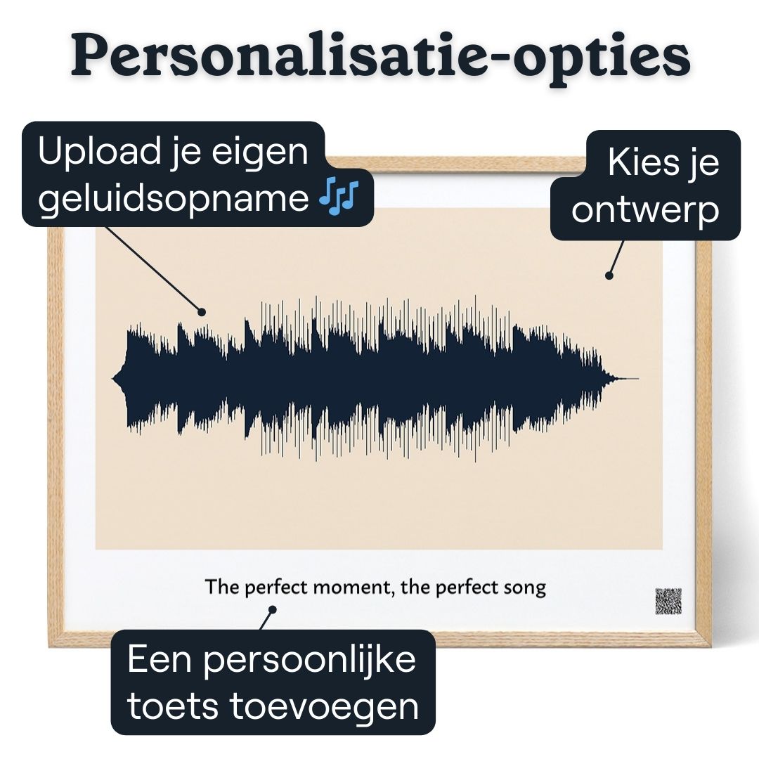 Wij nemen je audiobestand en zetten je geluid om in een visuele golf. Elke geluidsgolfkunst is uniek voor jou, omdat geen twee stemmen helemaal gelijk zijn. Upload gewoon een audiobestand van je geliefde die "Ik hou van je" zegt en wij maken er een kunstwerk van.
