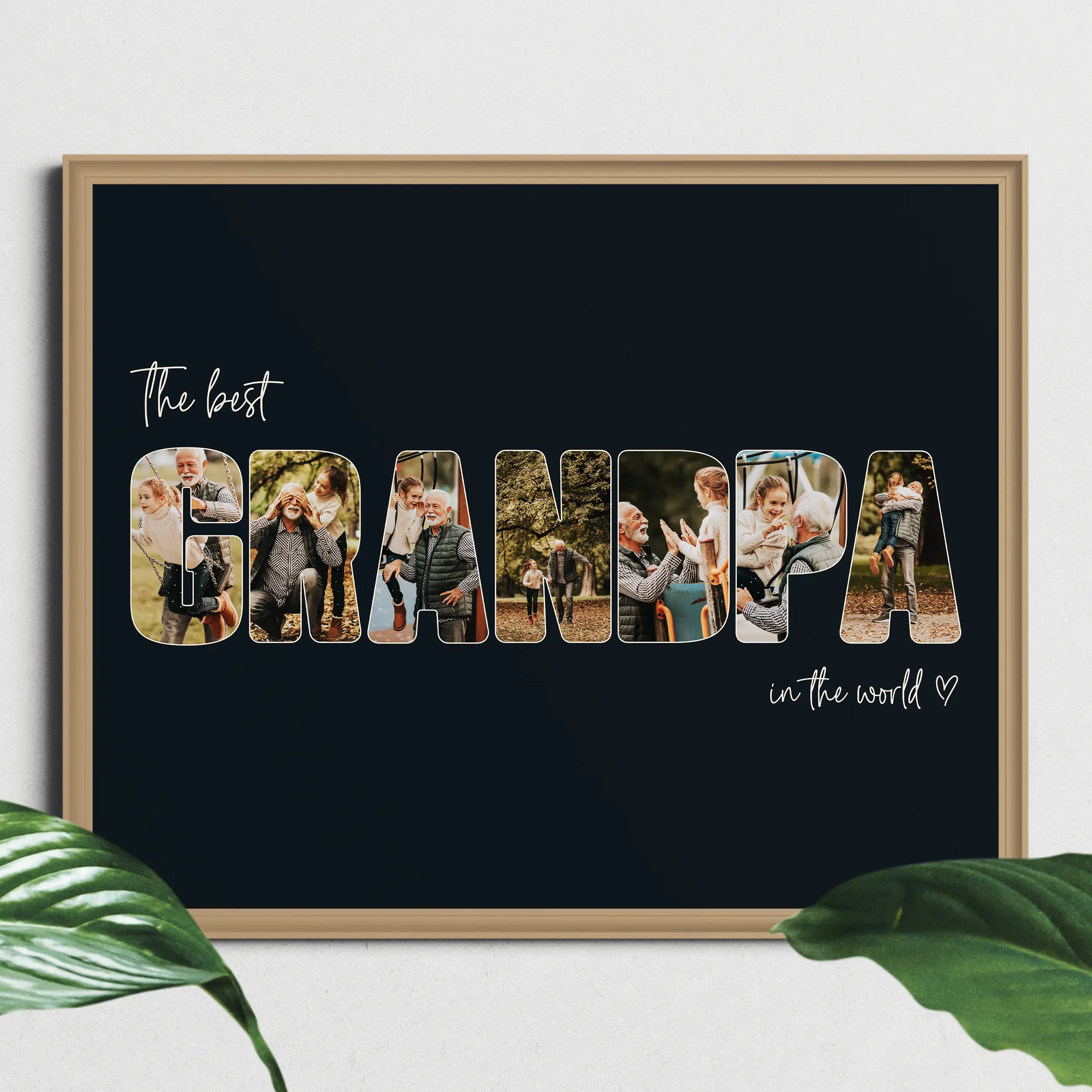 Er gaat niets boven de speciale band tussen een grootvader en zijn kleinkinderen. Vier deze gekoesterde relatie met de Fotocollage Opa Brief van Positive Prints, een gepersonaliseerd en sentimenteel cadeau dat je opa voor altijd zal koesteren. Deze unieke fotocollage is gemaakt van je favoriete foto's, gerangschikt in de vorm van het woord "opa". Je kunt het woord ook aanpassen aan de naam of favoriete bijnaam van je opa, zoals "papa" of "gramps".